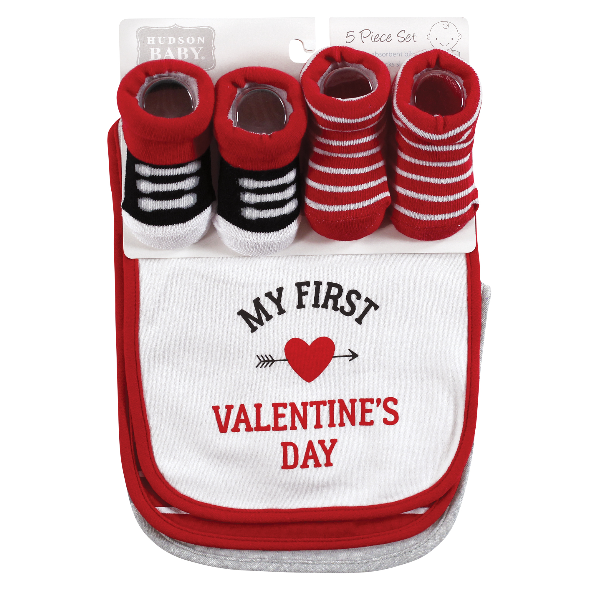 Hudson Baby Cotton Bib and Sock Set, Valentine Heartbreaker