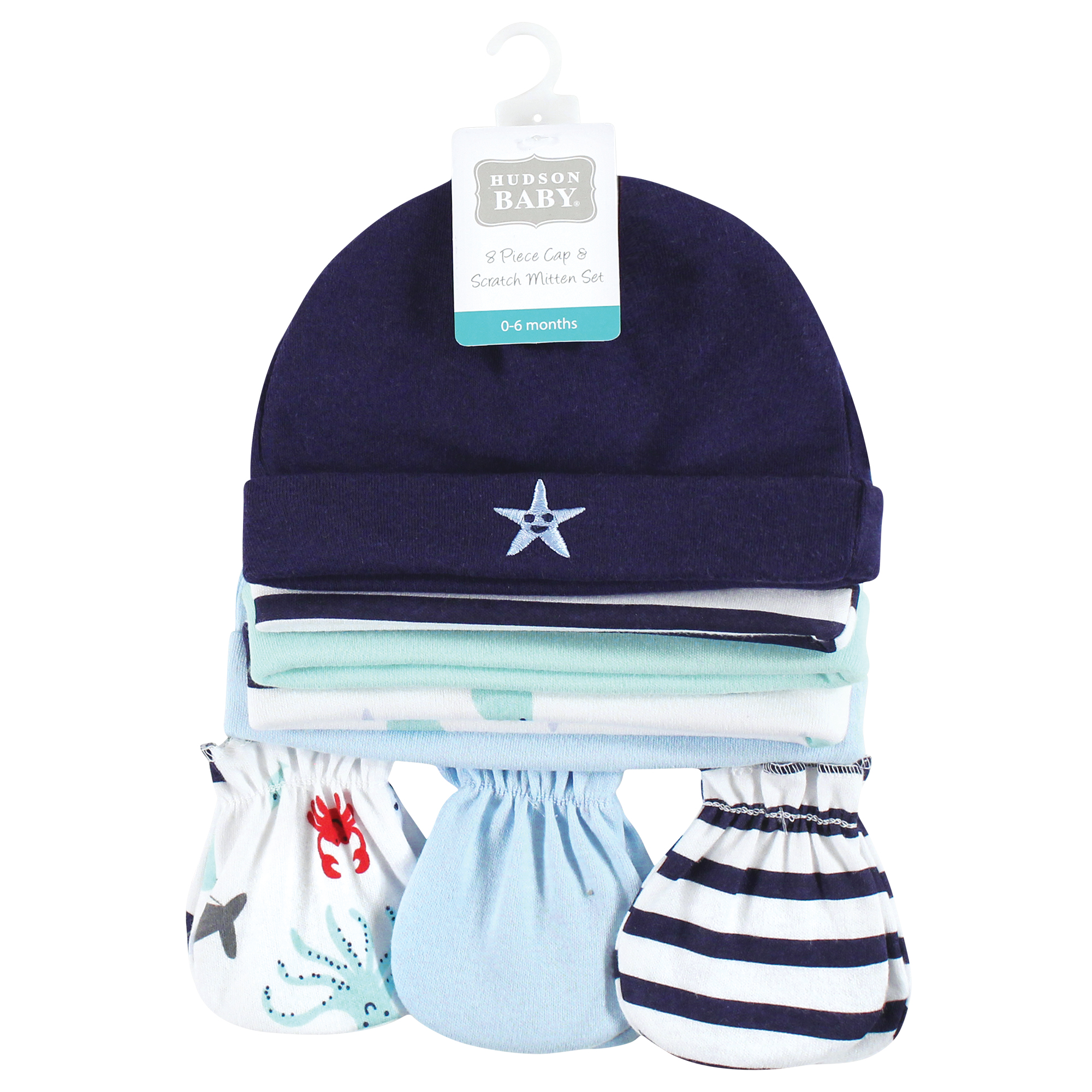Hudson Baby Cotton Cap and Scratch Mitten Set, Ocean Friends