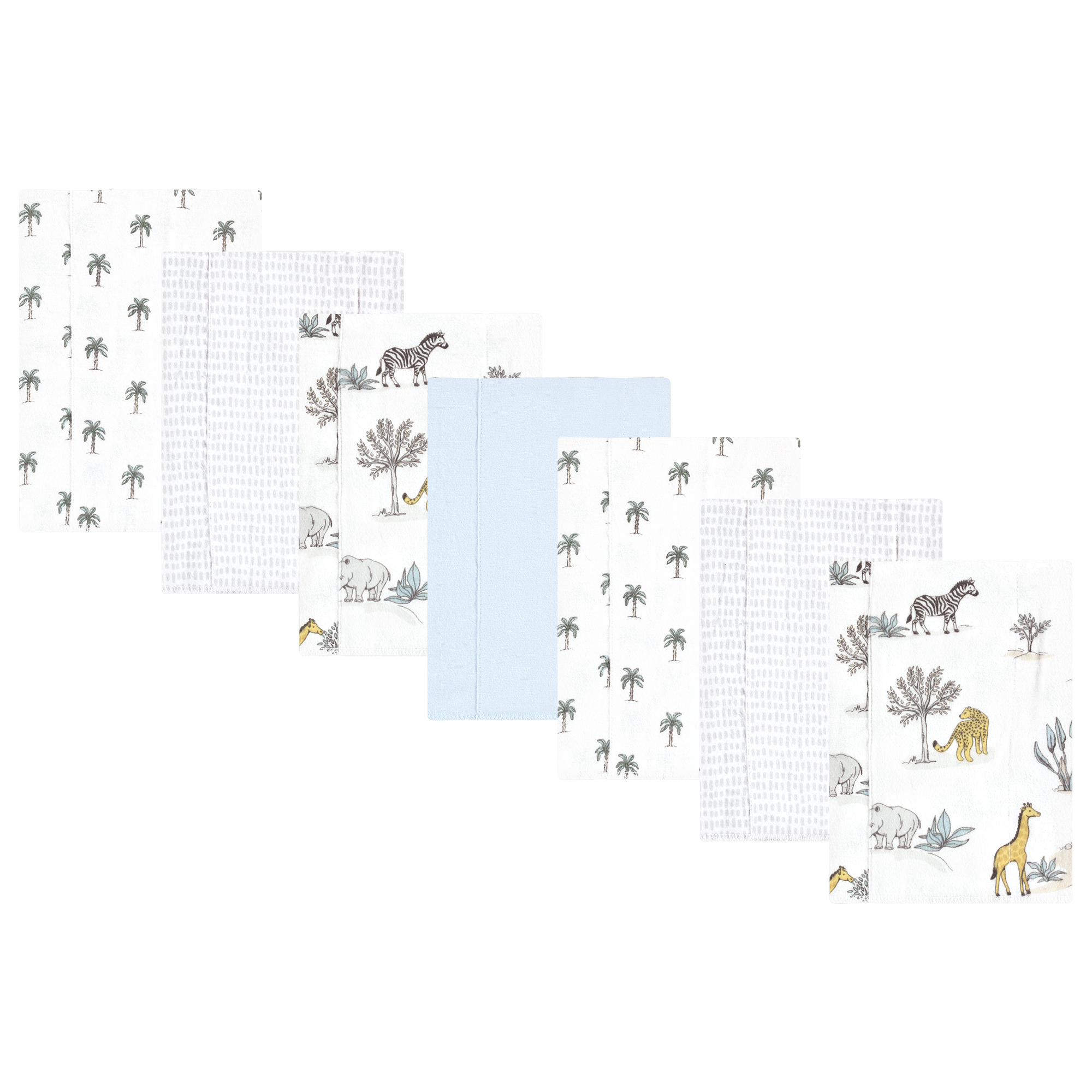 Hudson Baby Cotton Flannel Burp Cloths, Boy Safari World 7-Pack