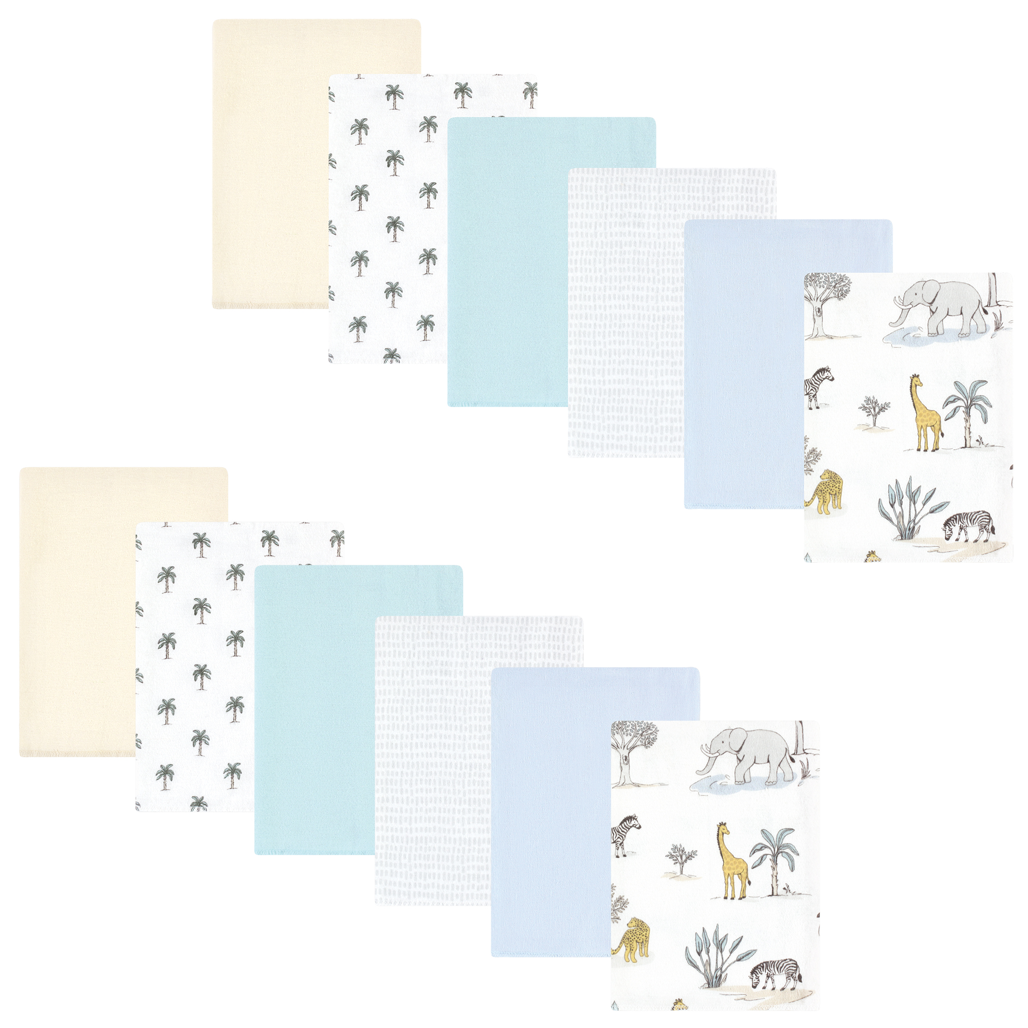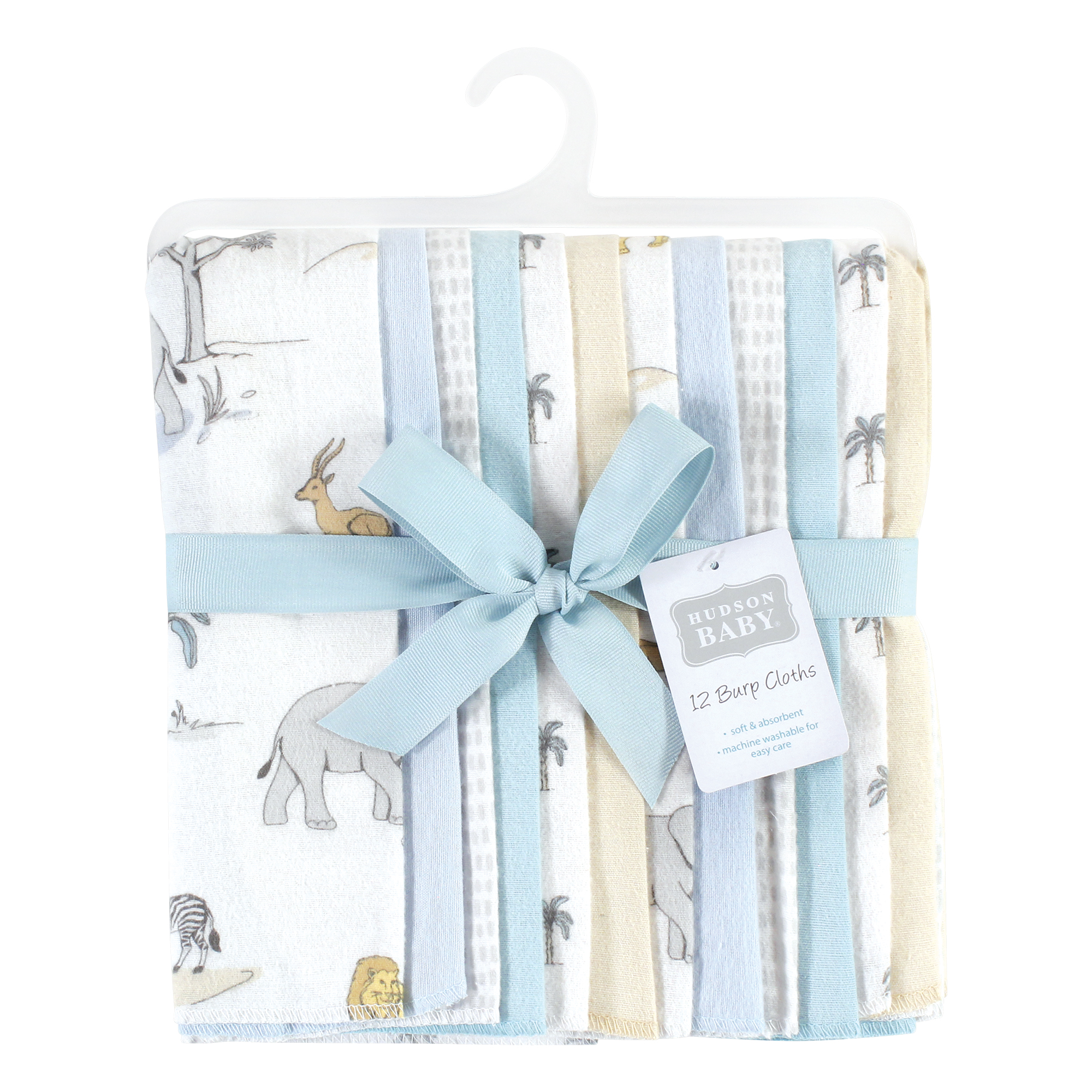Hudson Baby Cotton Flannel Burp Cloths Bundle, Boy Safari World
