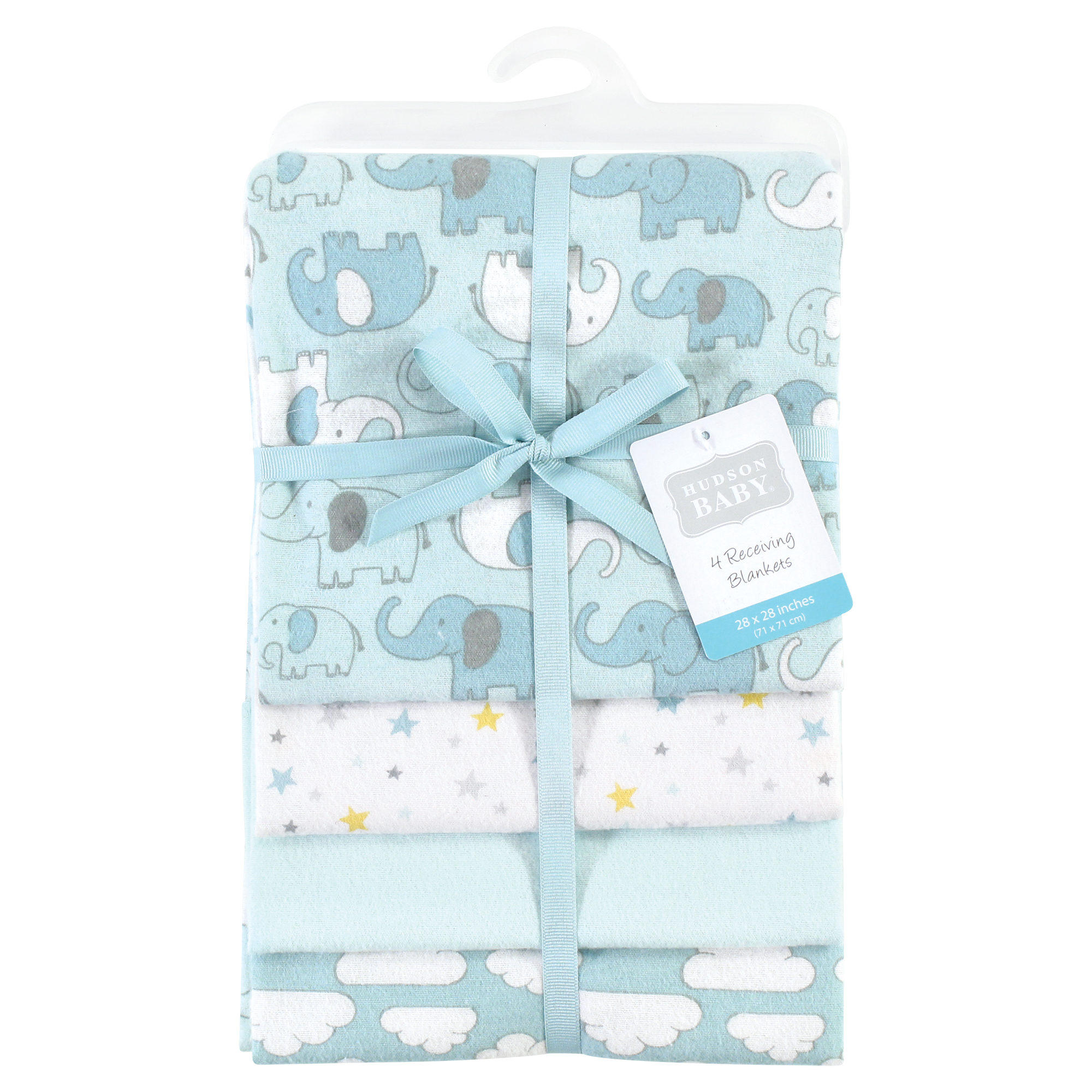 Hudson Baby Cotton Flannel Receiving Blankets, Boy New Elephant