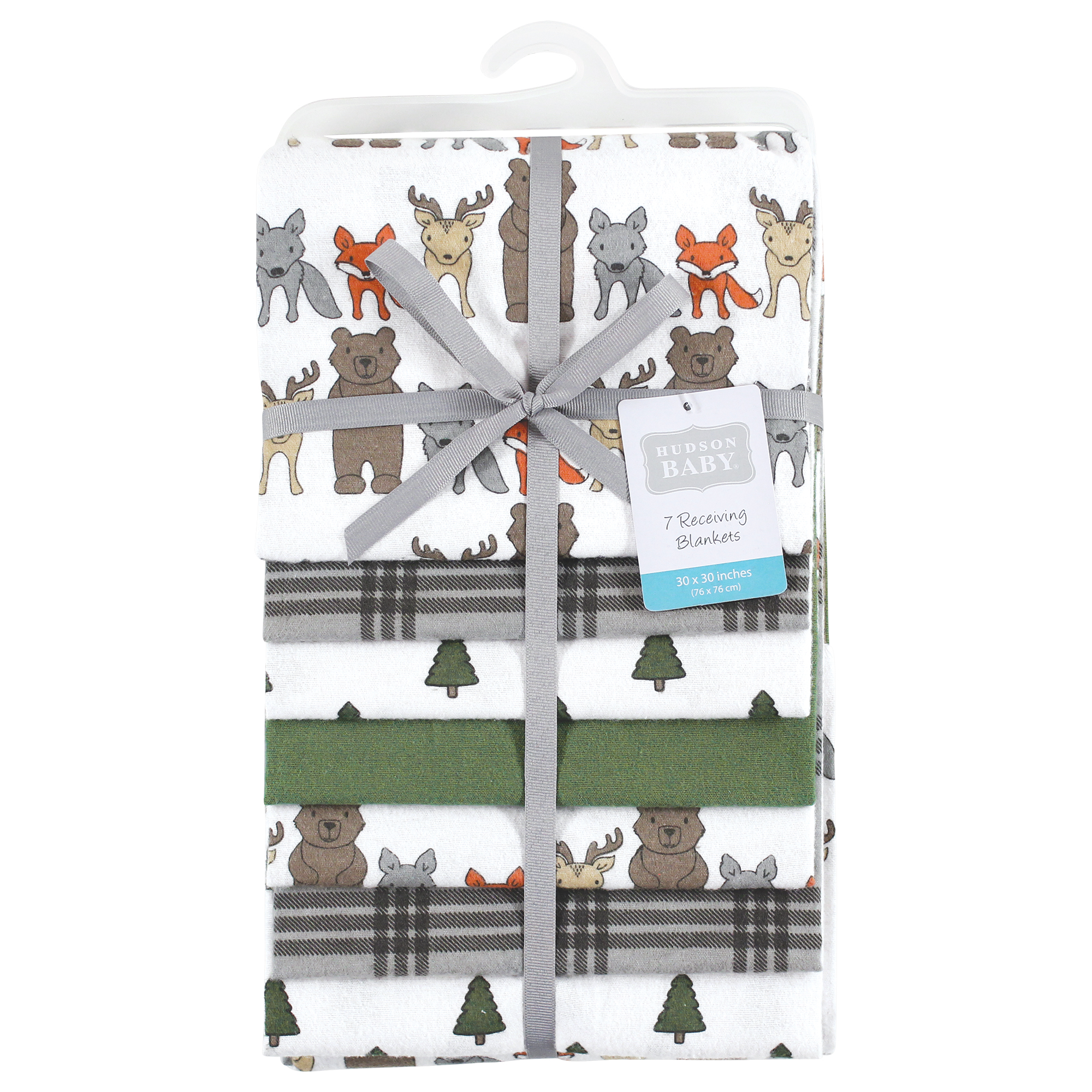 Hudson Baby Cotton Flannel Receiving Blankets Bundle, Wild Forest