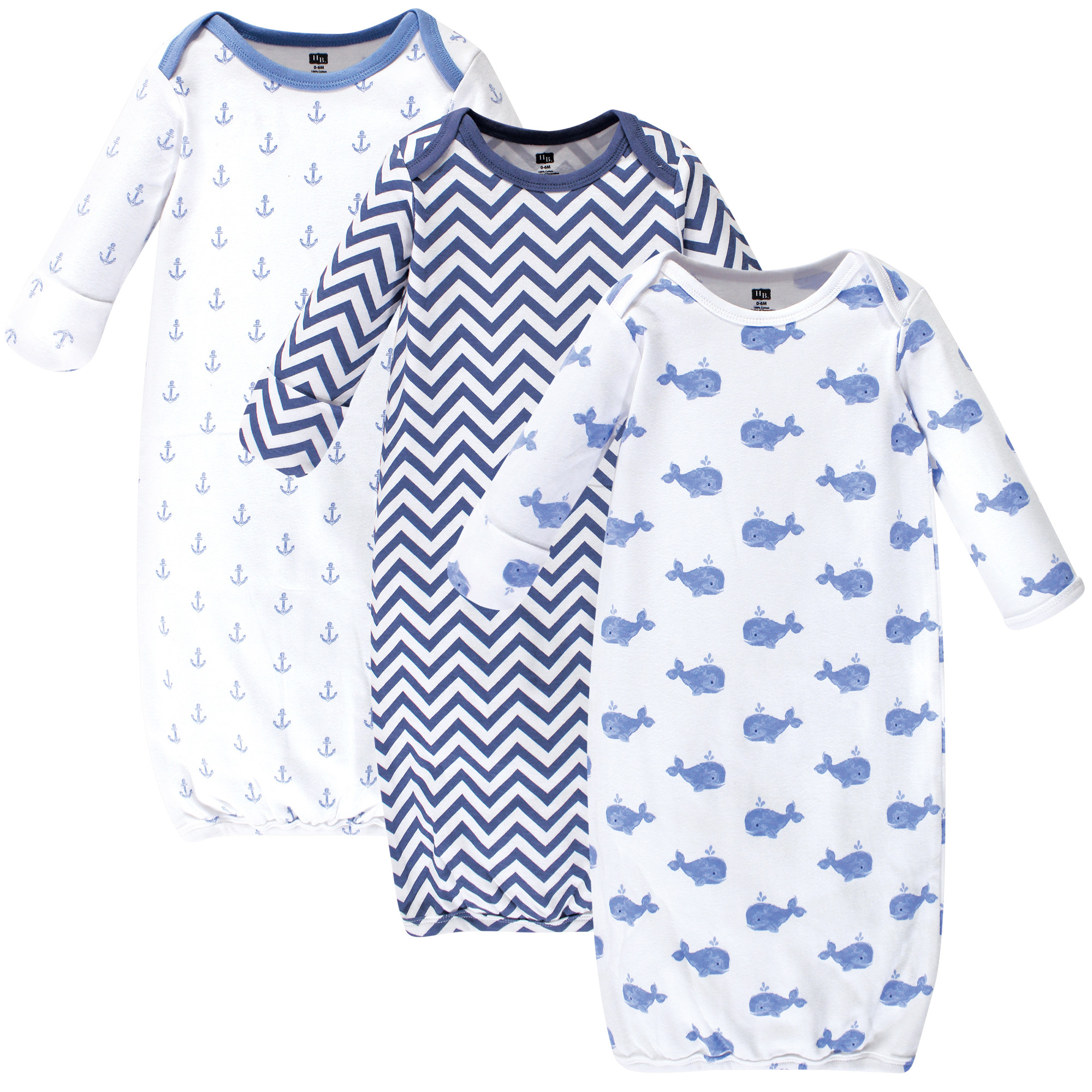 Hudson Baby Infant Boy Cotton Gowns, Blue Whales, Preemie/Newborn