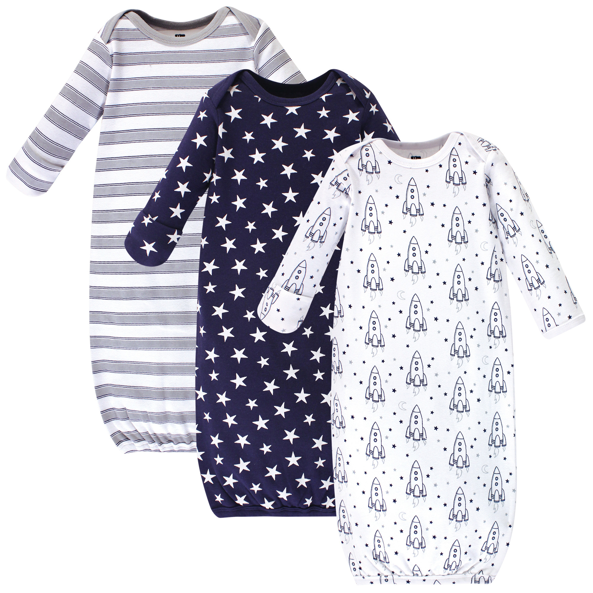 Hudson Baby Infant Boy Cotton Gowns, Rocket Ship, Preemie/Newborn