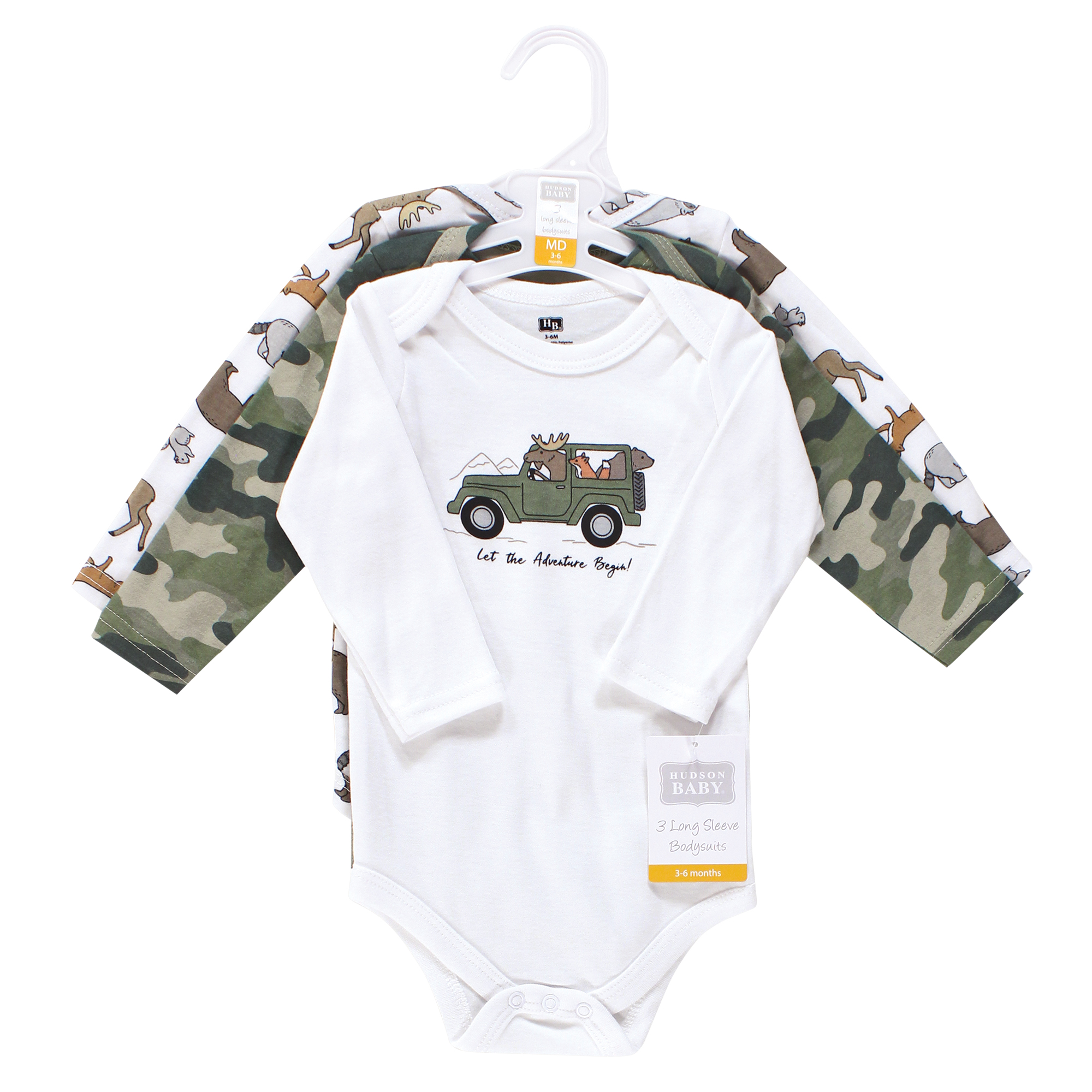 Hudson Baby Cotton Long-Sleeve Bodysuits, Animal Adventure 3-Pack