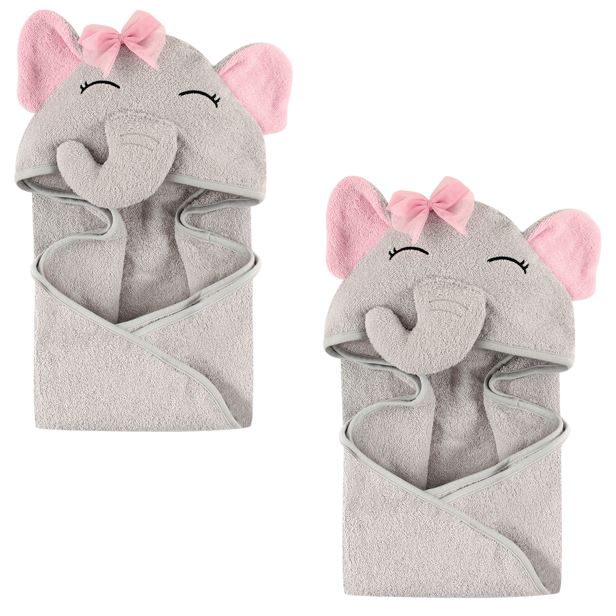 Hudson Baby Cotton Animal Face Hooded Towel Bundle Set, Pretty Elephant 2-Piece
