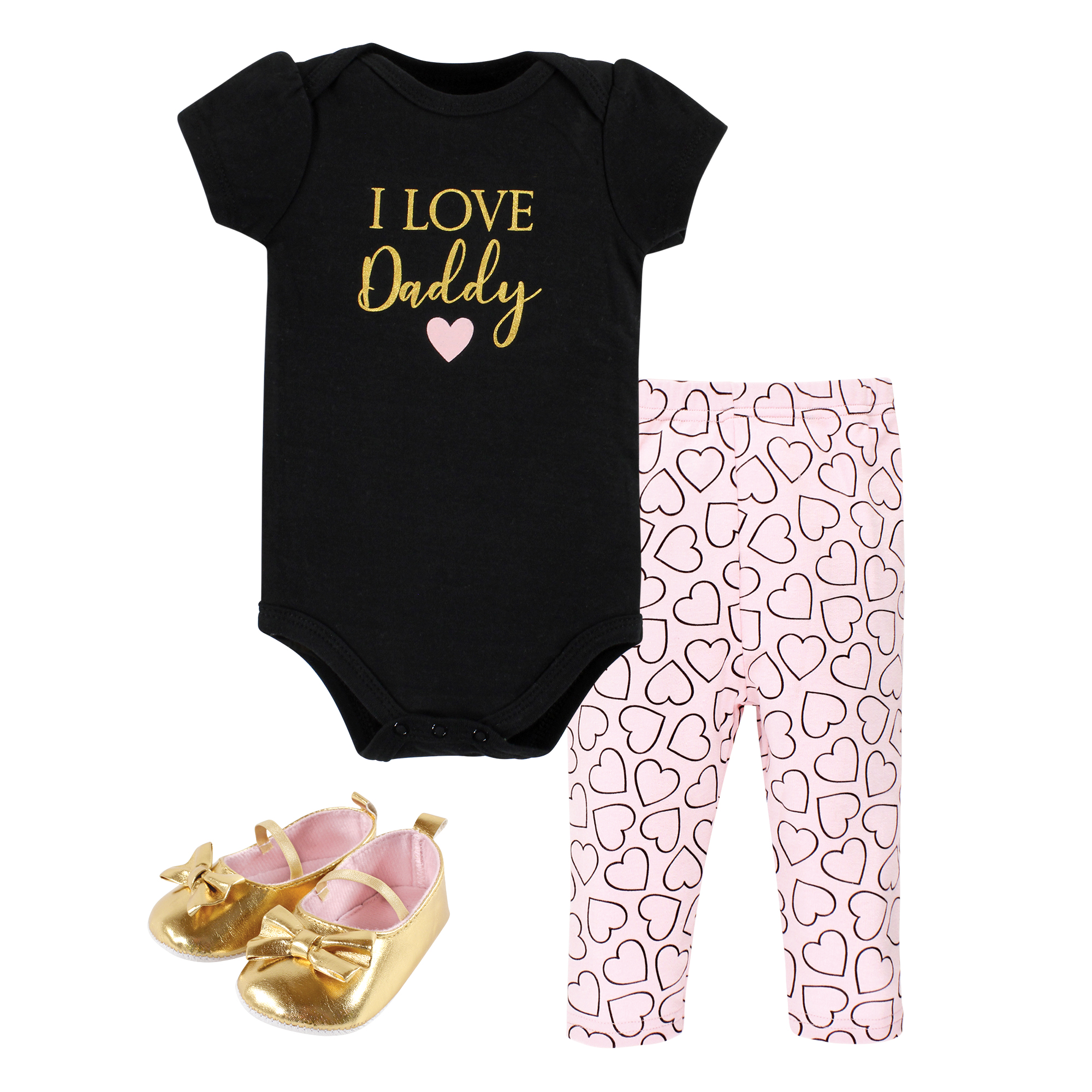 Hudson Baby Cotton Bodysuit, Pant and Shoe Set, Girl Daddy