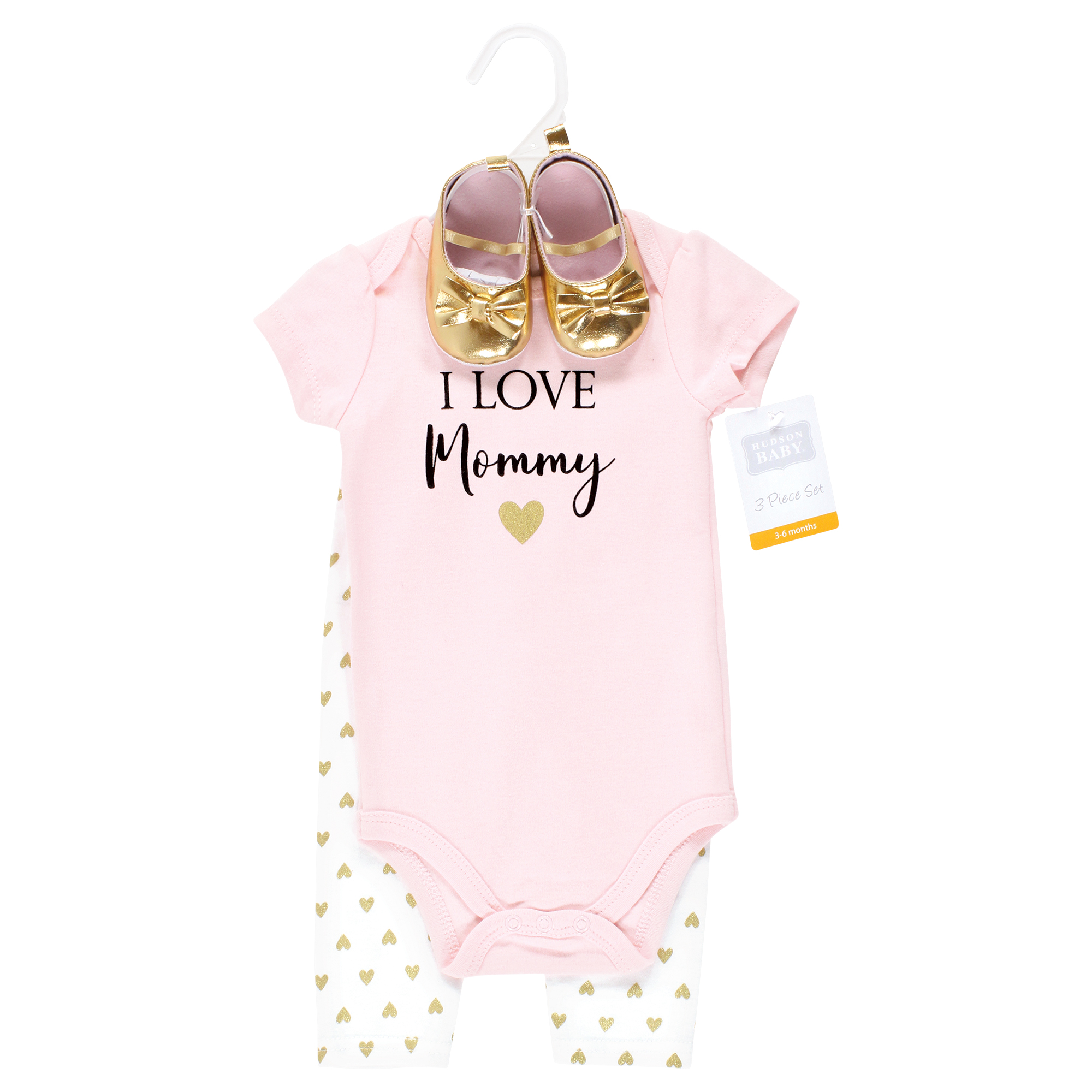 Hudson Baby Cotton Bodysuit, Pant and Shoe Set, Girl Mommy