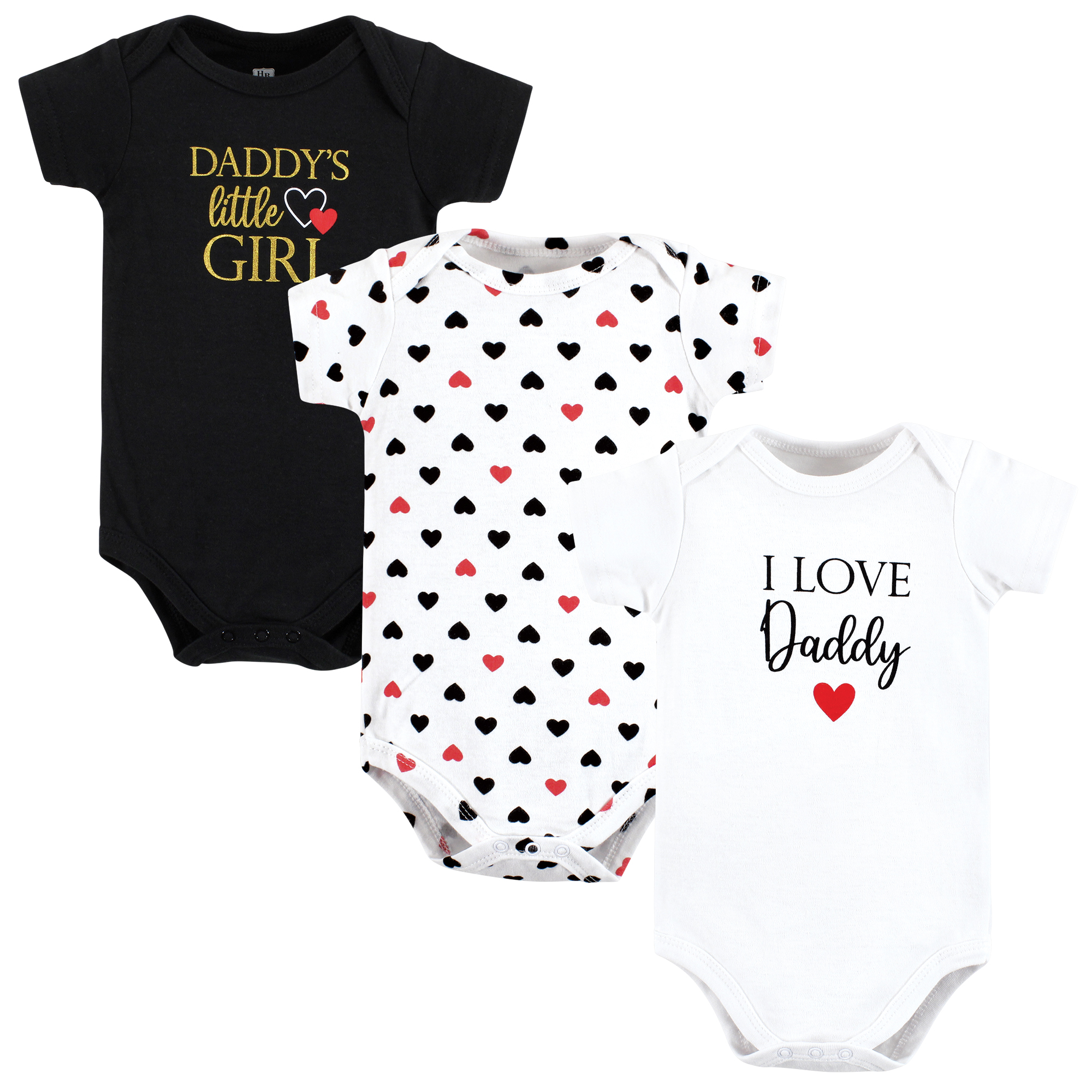 Hudson Baby Cotton Bodysuits, Girl Daddy Red Black 3Pk