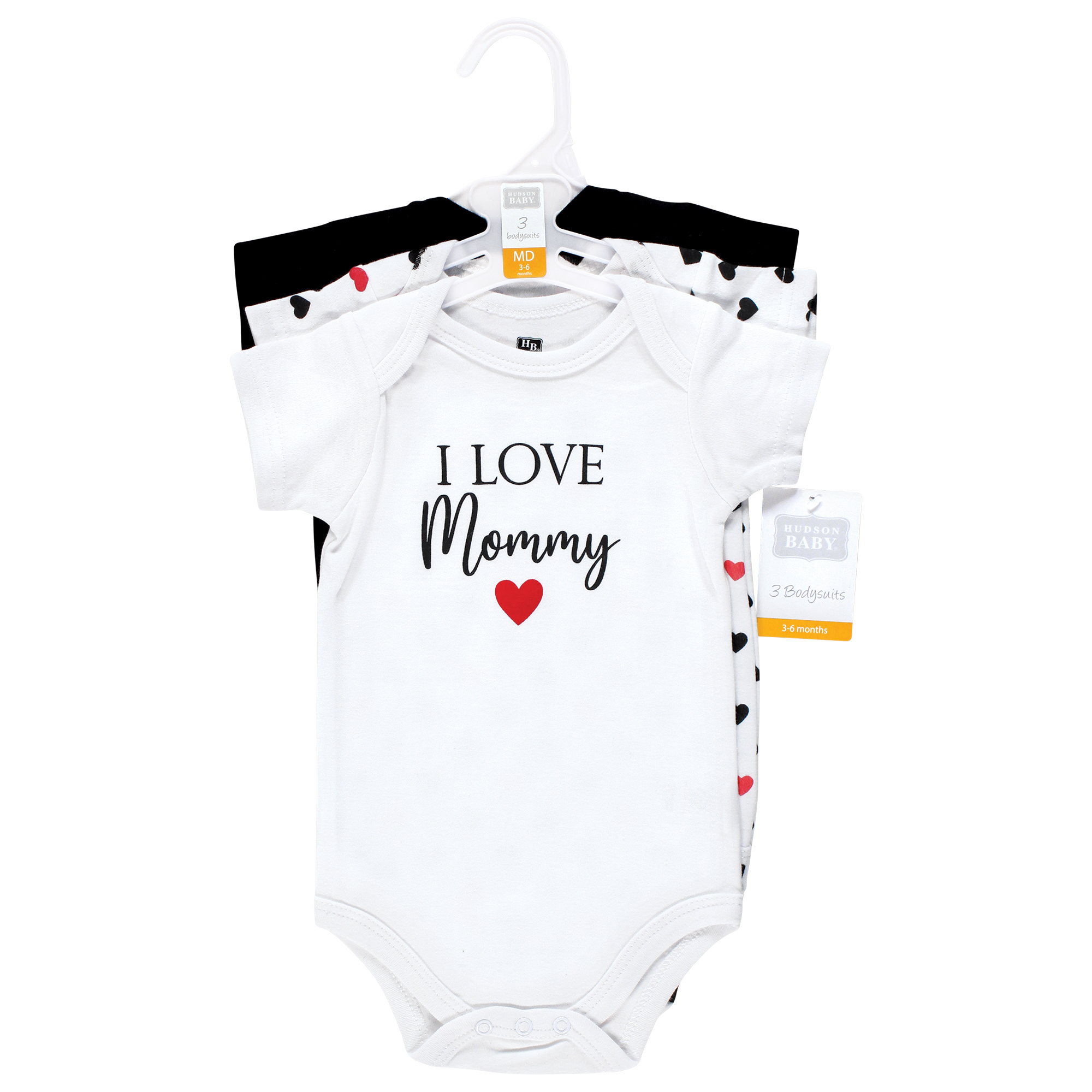 Hudson Baby Cotton Bodysuits, Girl Mommy Red Black 3Pk