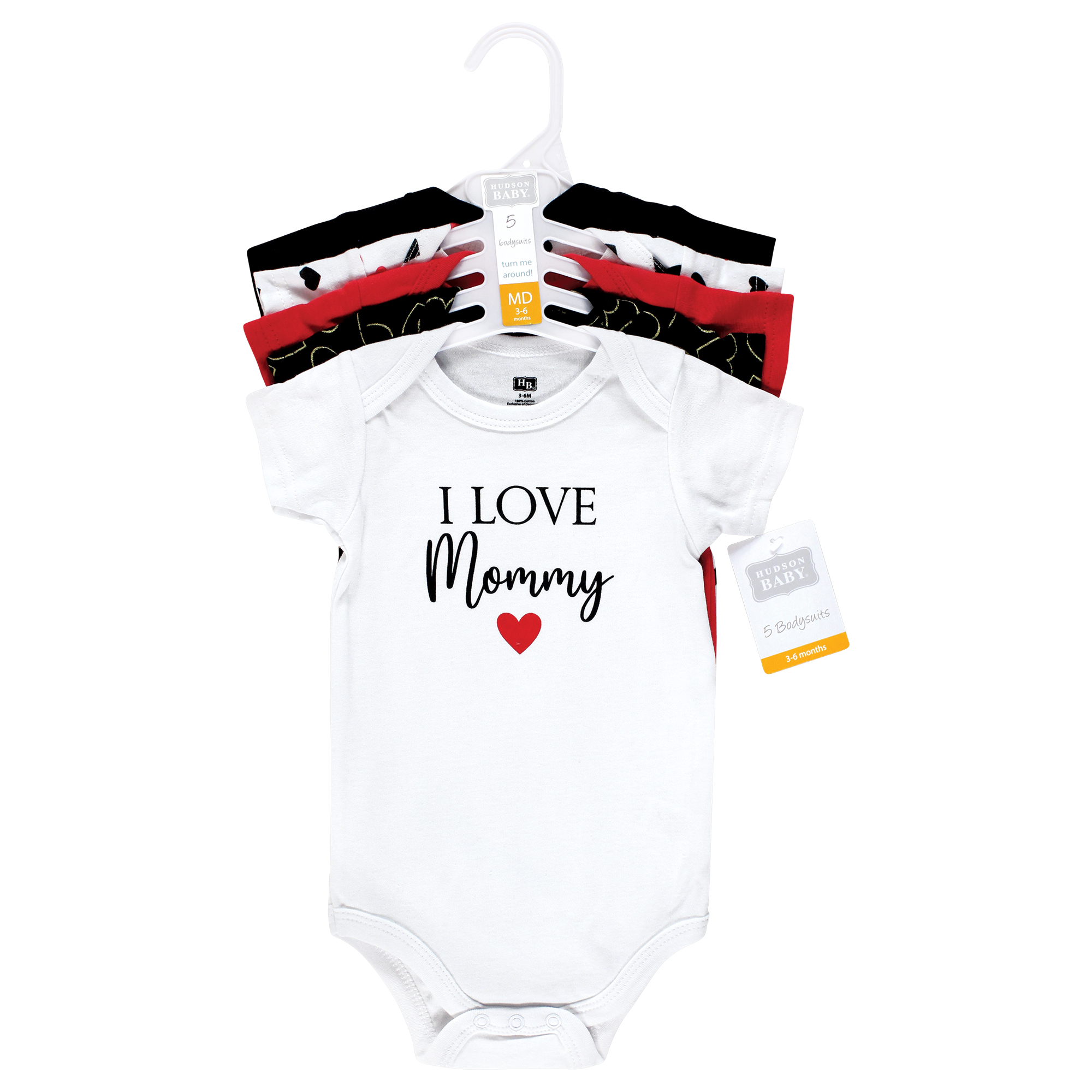 Hudson Baby Cotton Bodysuits, Girl Mommy Red Black 5Pk