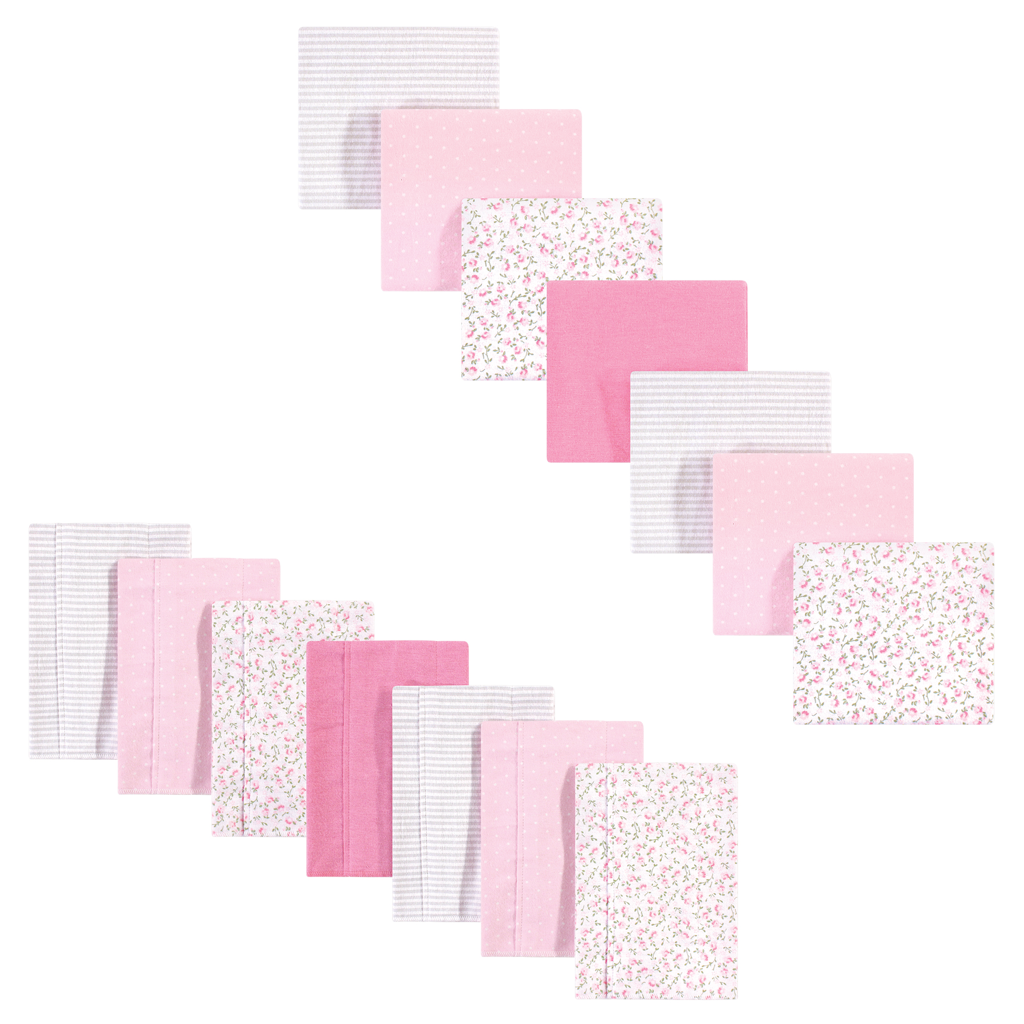 Hudson Baby Cotton Flannel Burp Cloths and Receiving Blankets, 14-Piece, Pink Peony