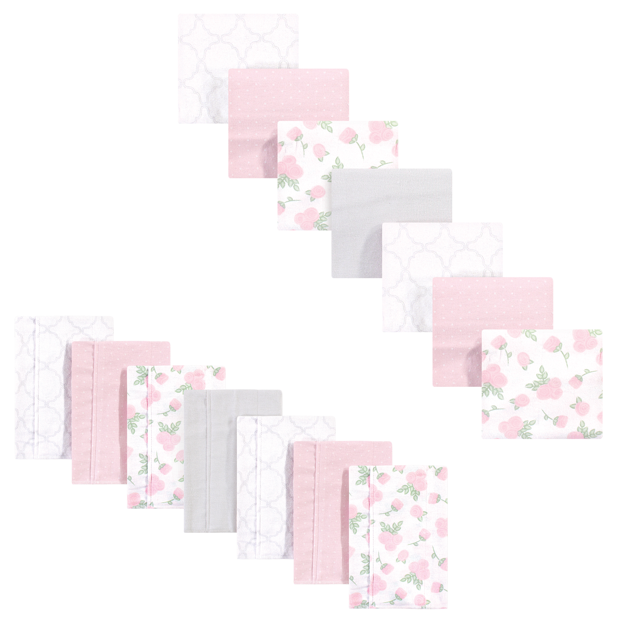 Hudson Baby Cotton Flannel Burp Cloths and Receiving Blankets, 14-Piece, Pink Rose