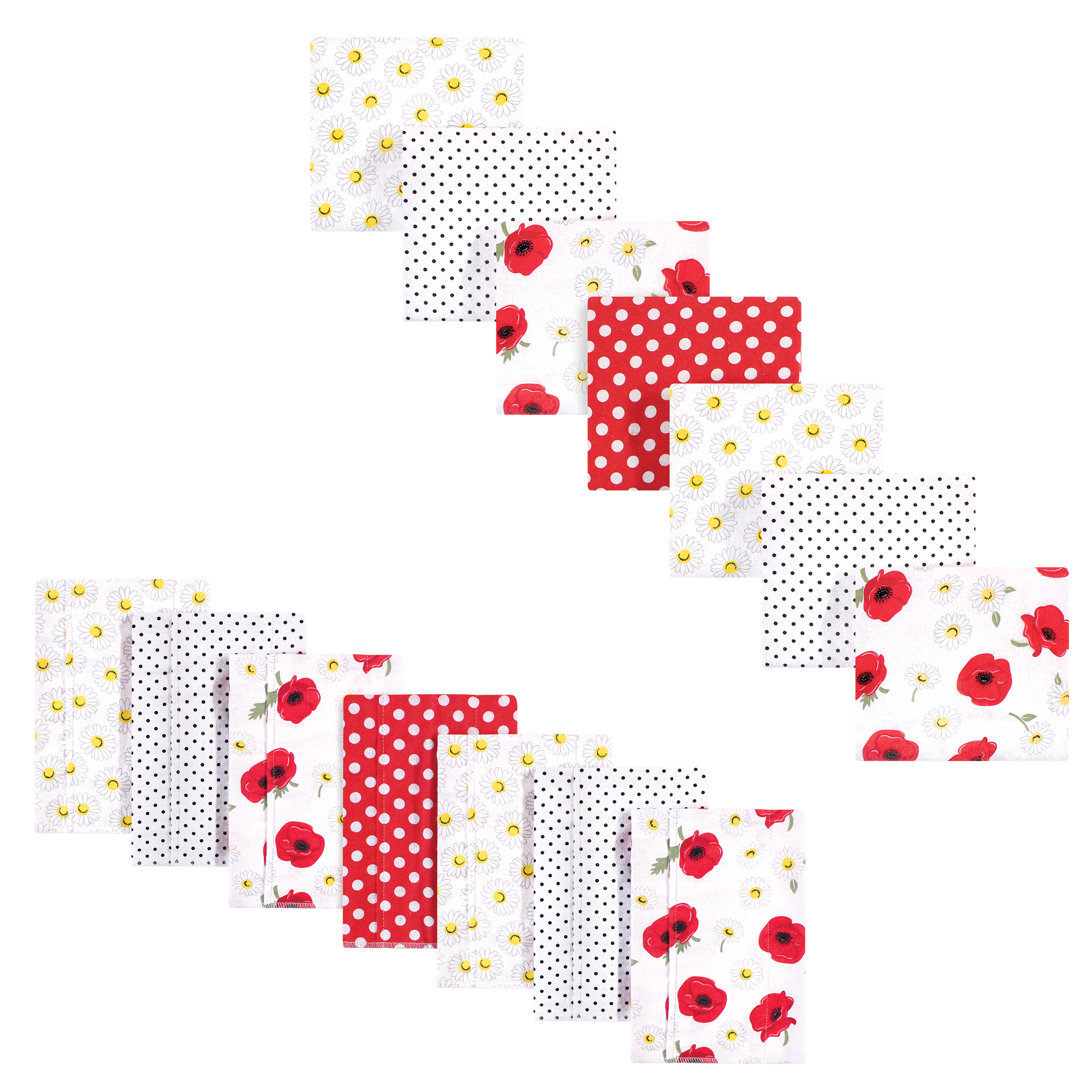 Hudson Baby Cotton Flannel Burp Cloths and Receiving Blankets, 14-Piece, Poppy Daisy