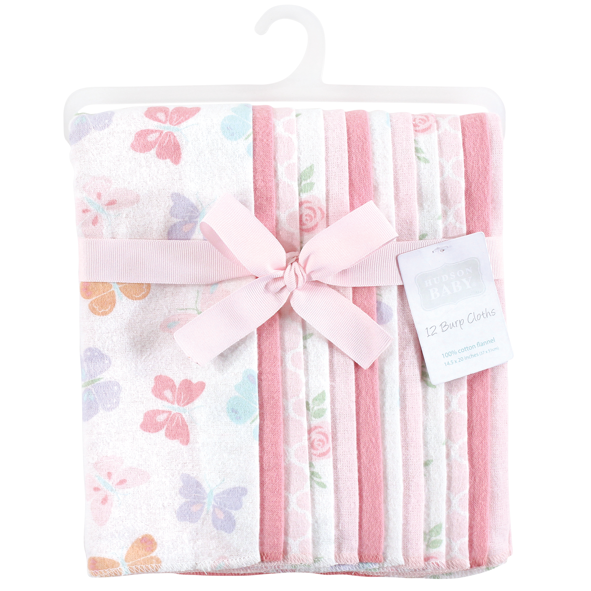 Hudson Baby Cotton Flannel Burp Cloths Bundle, Pastel Butterfly