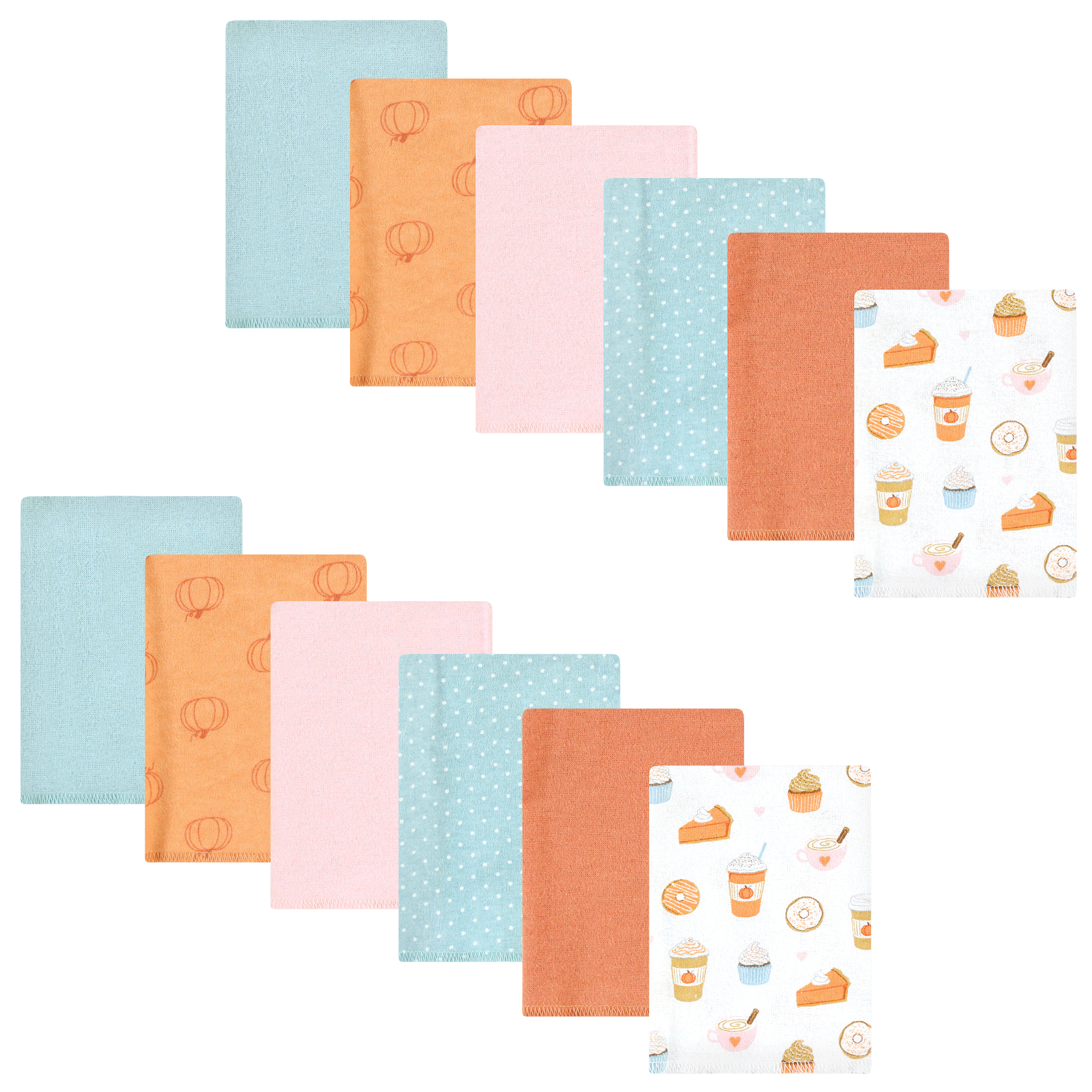 Hudson Baby Cotton Flannel Burp Cloths Bundle, Pumpkin Spice