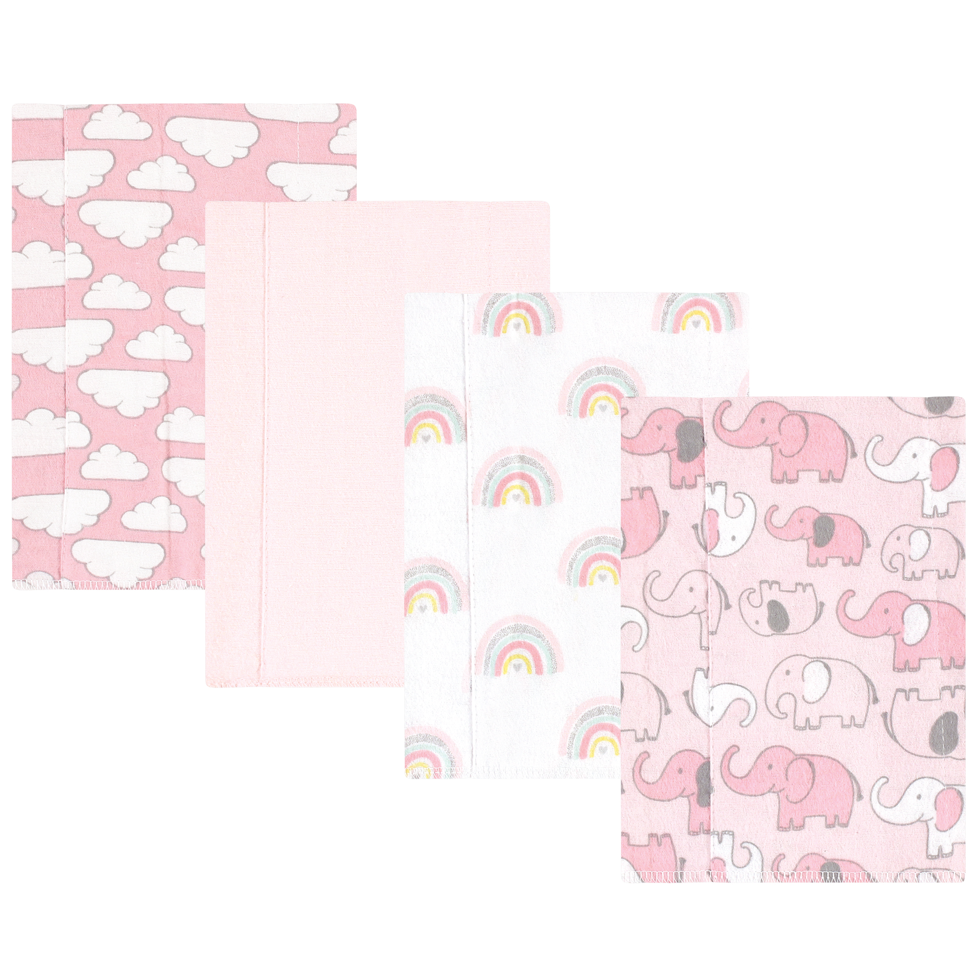 Hudson Baby Cotton Flannel Burp Cloths, Girl New Elephant 4-Pack