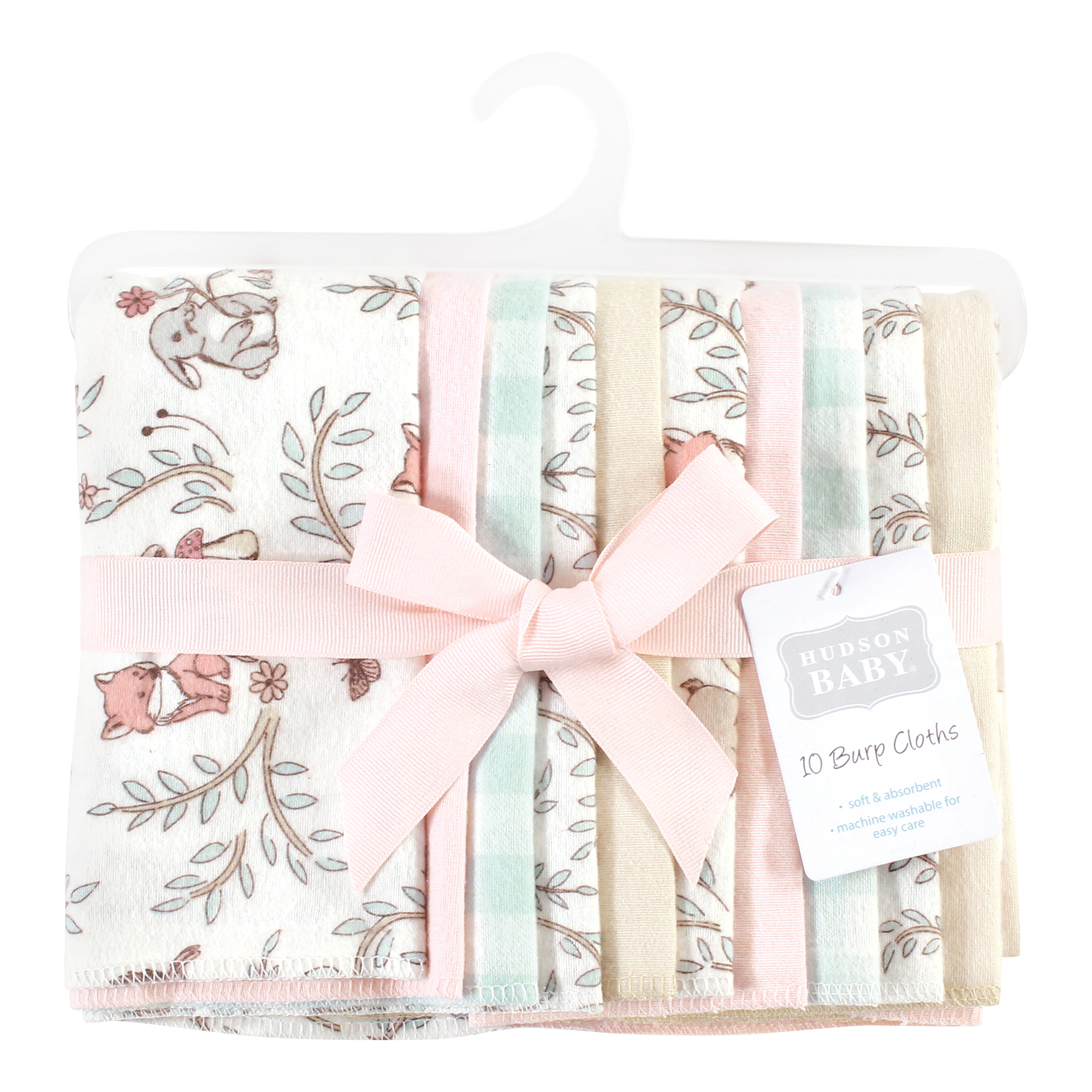 Hudson Baby Cotton Flannel Burp Cloths, Girl Woodland Pals 10-Pack