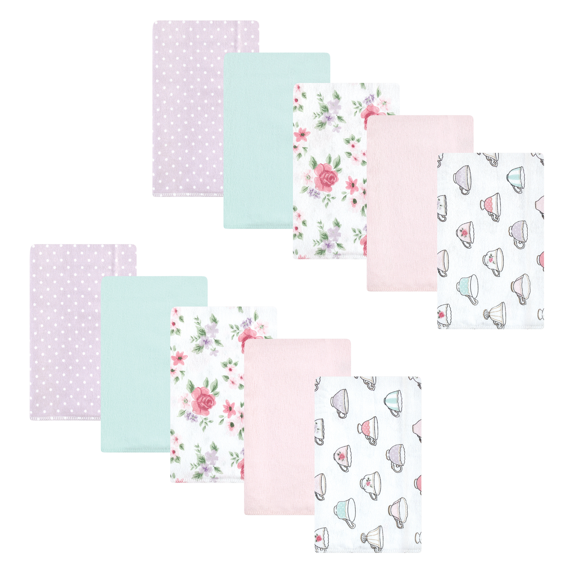 Hudson Baby Cotton Flannel Burp Cloths, Tea Party