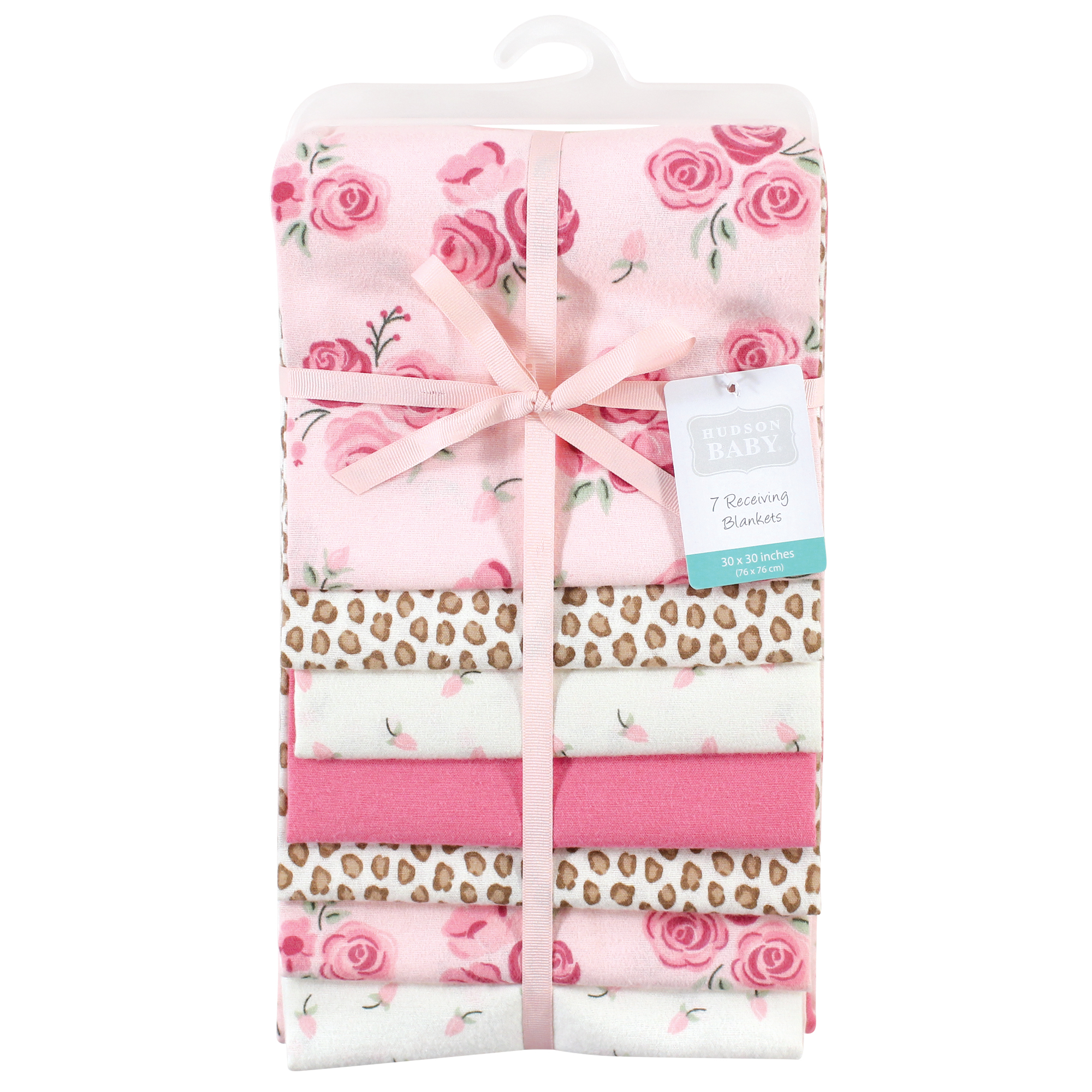 Hudson Baby Cotton Flannel Receiving Blankets Bundle, Blush Rose