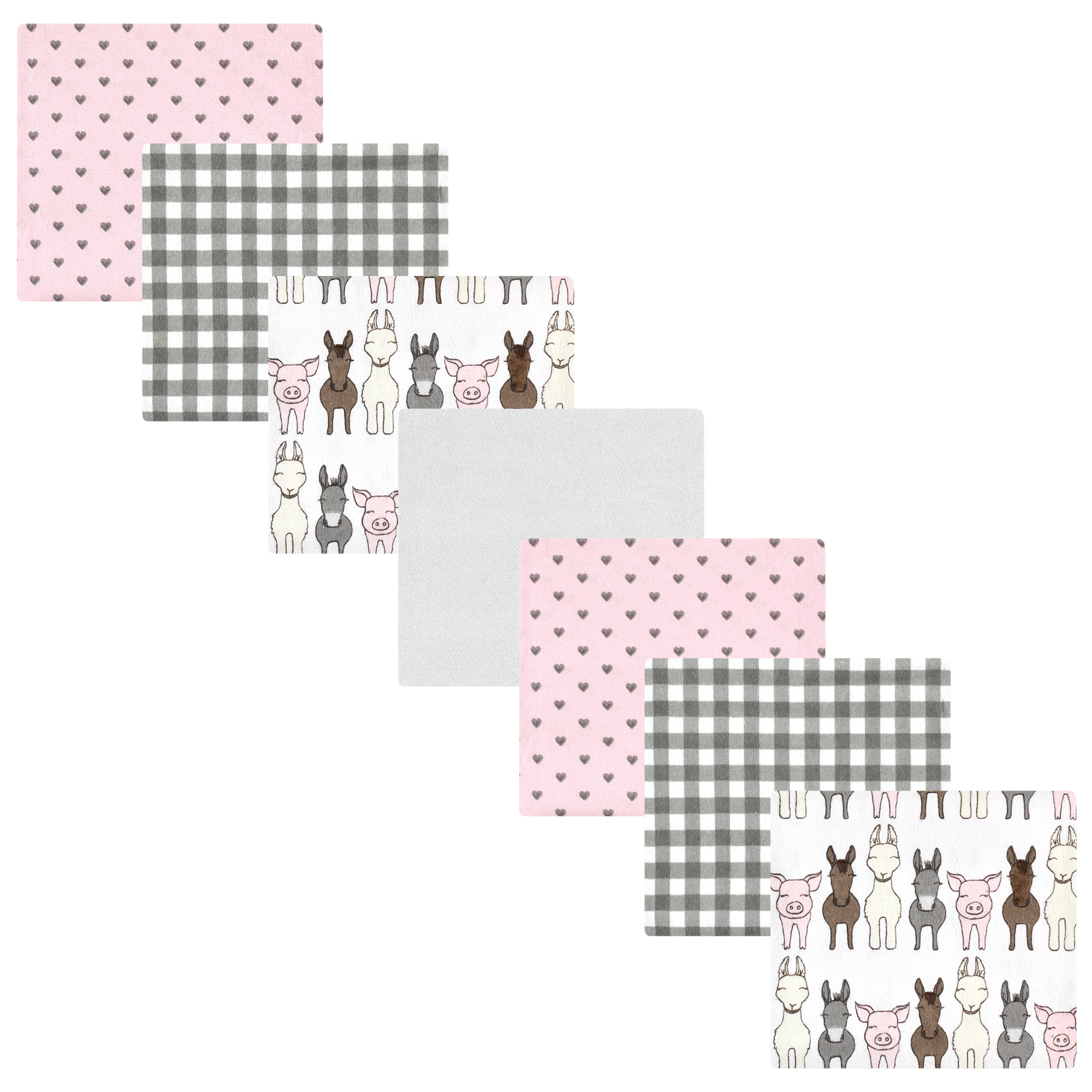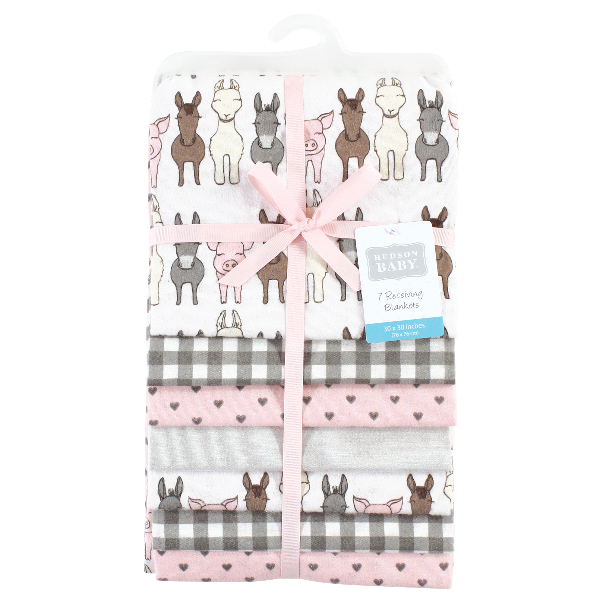 Hudson Baby Cotton Flannel Receiving Blankets Bundle, Farm Friends Pink