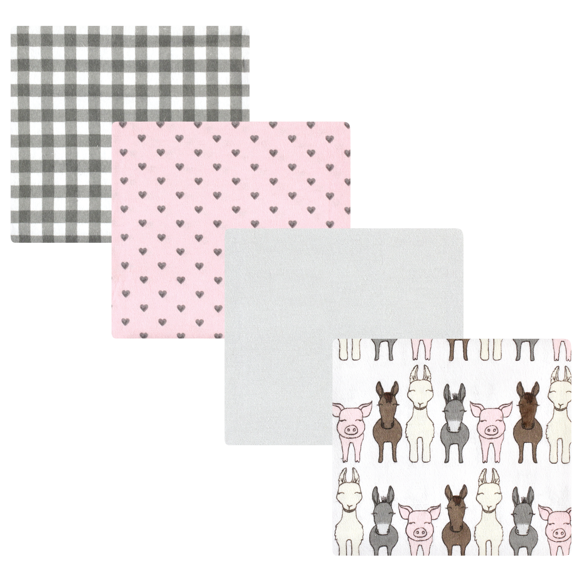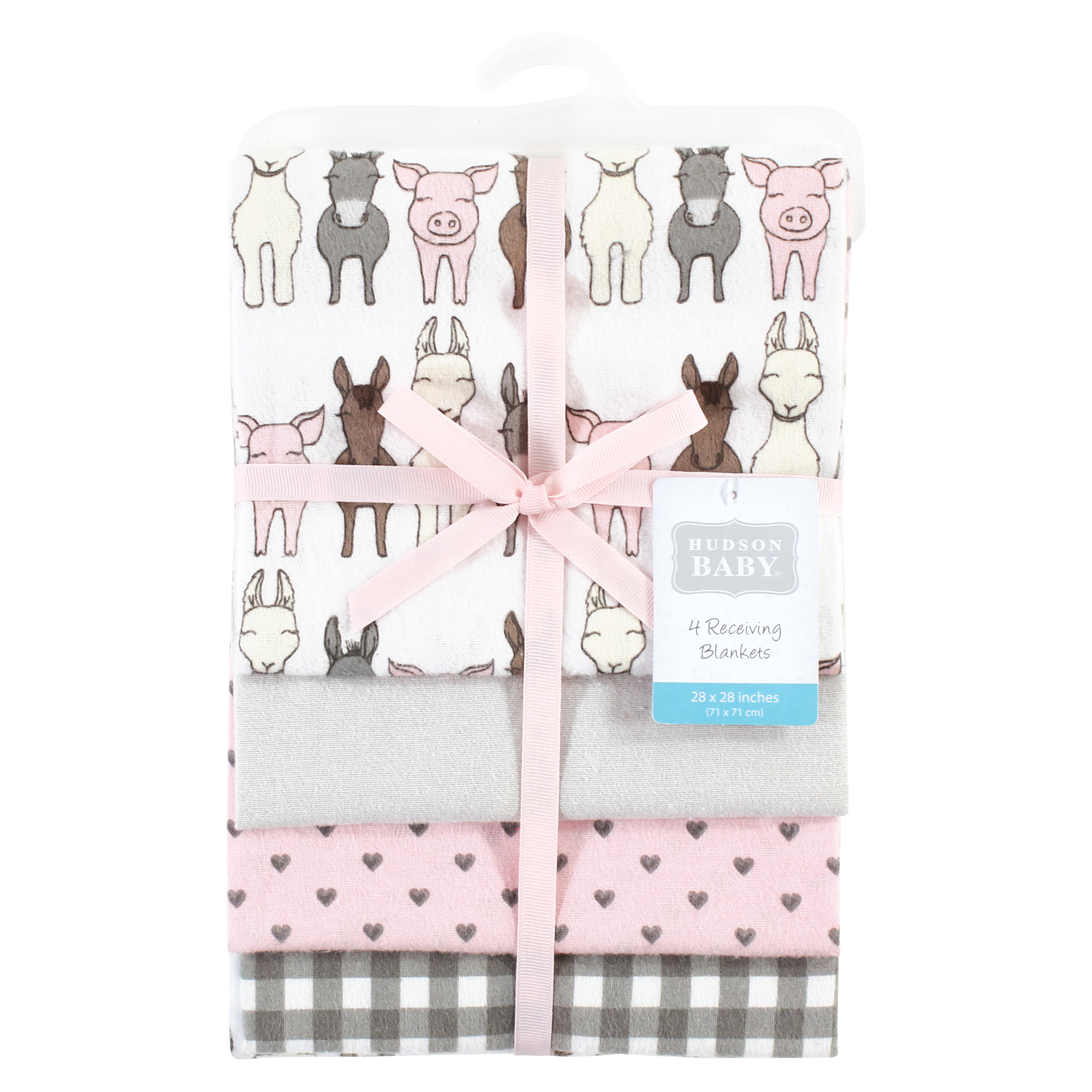 Hudson Baby Cotton Flannel Receiving Blankets, Farm Friends Pink