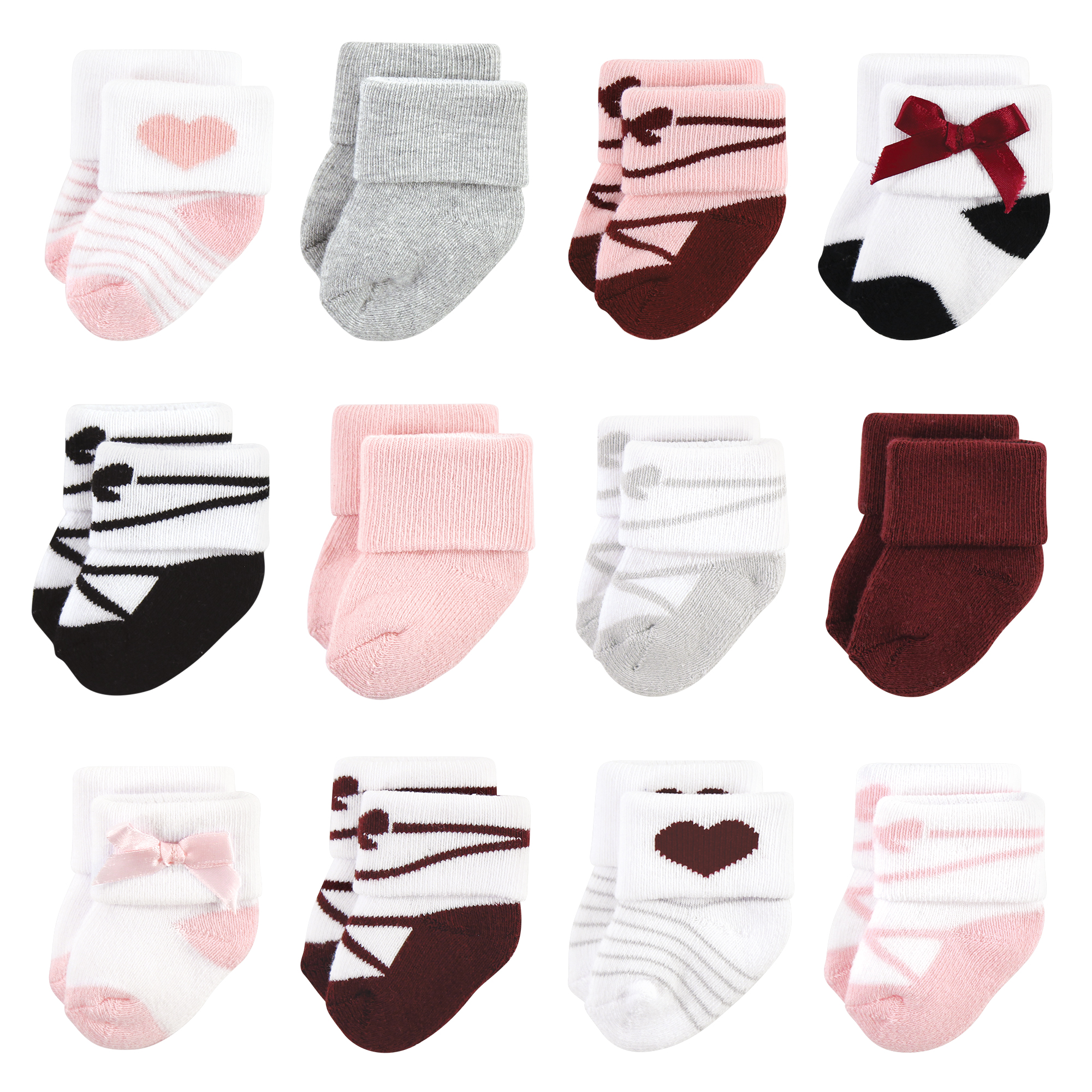 Hudson Baby Cotton Rich Newborn and Terry Socks, Ballet 12-Pack