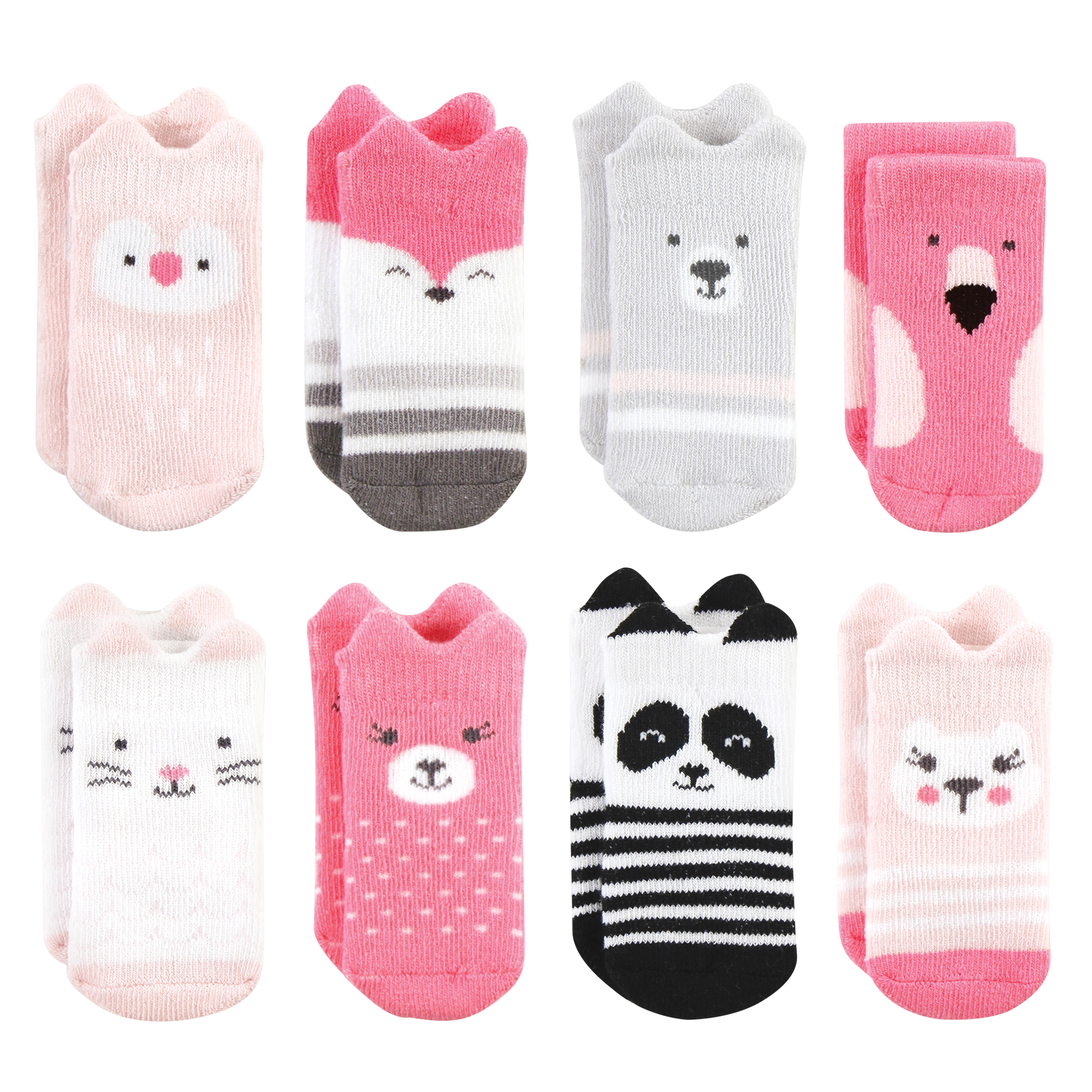 Hudson Baby Cotton Rich Newborn and Terry Socks, Pink Animals
