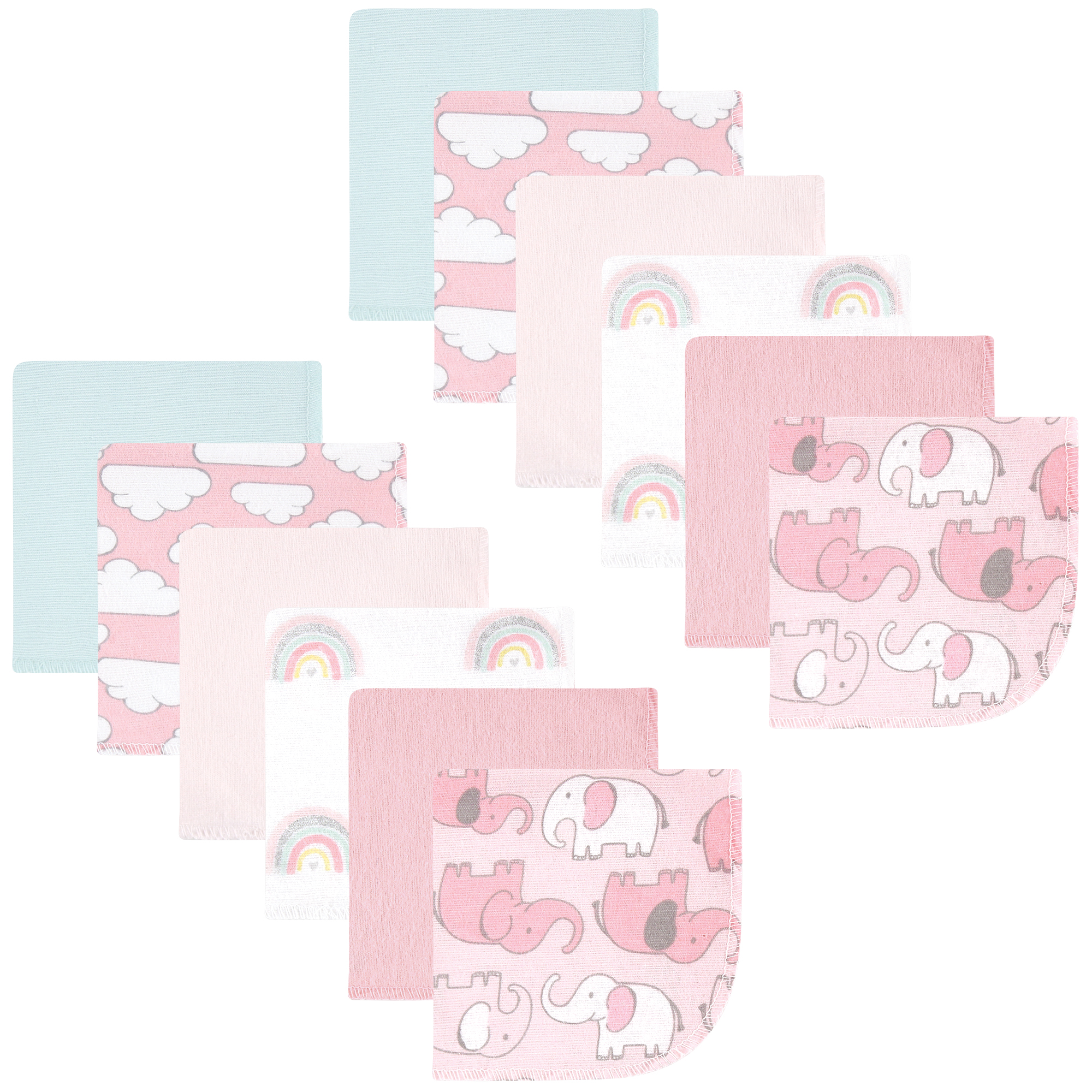 Hudson Baby Flannel Cotton Washcloths, Girl New Elephant 12-Pack