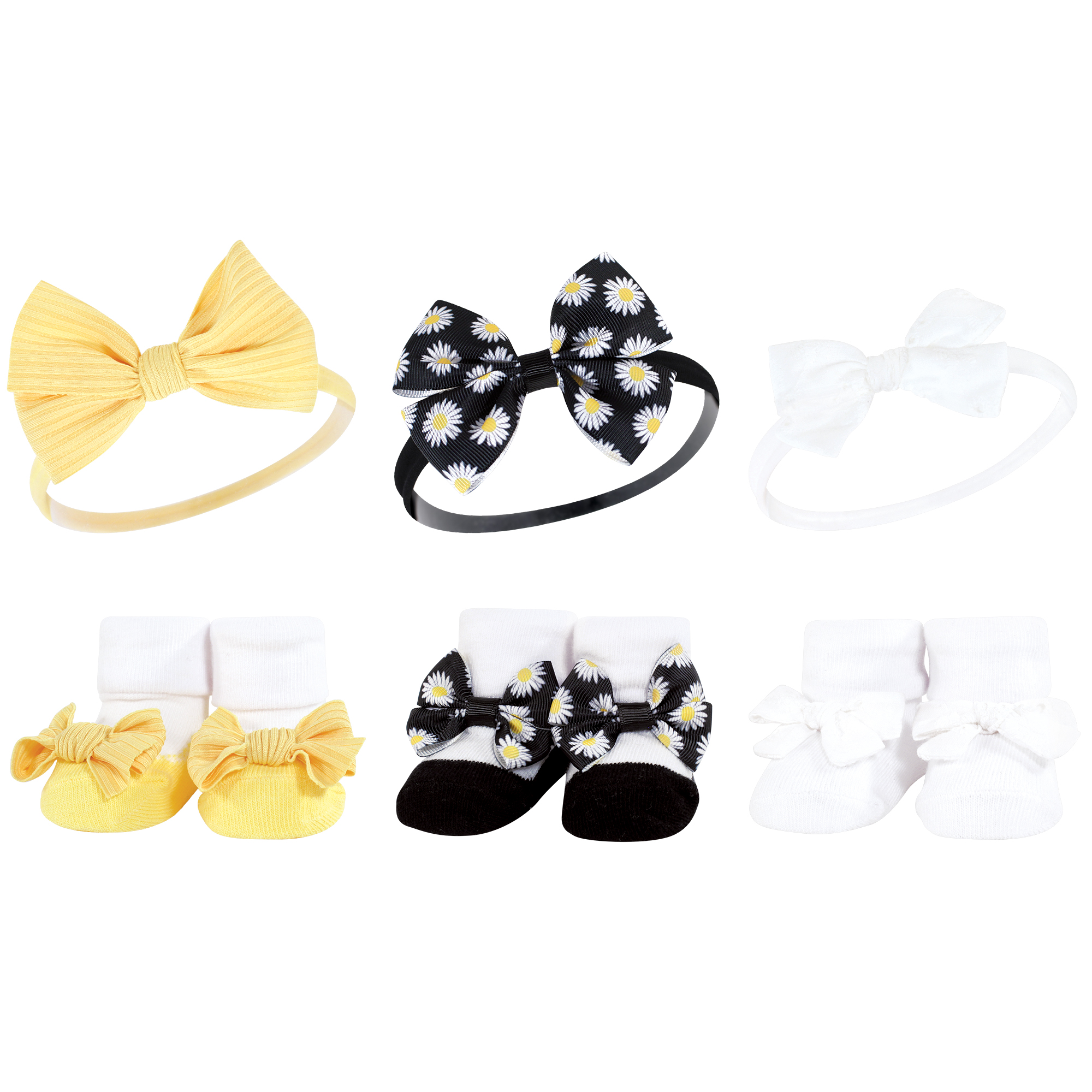 Hudson Baby Headband and Socks Giftset, Black Daisy