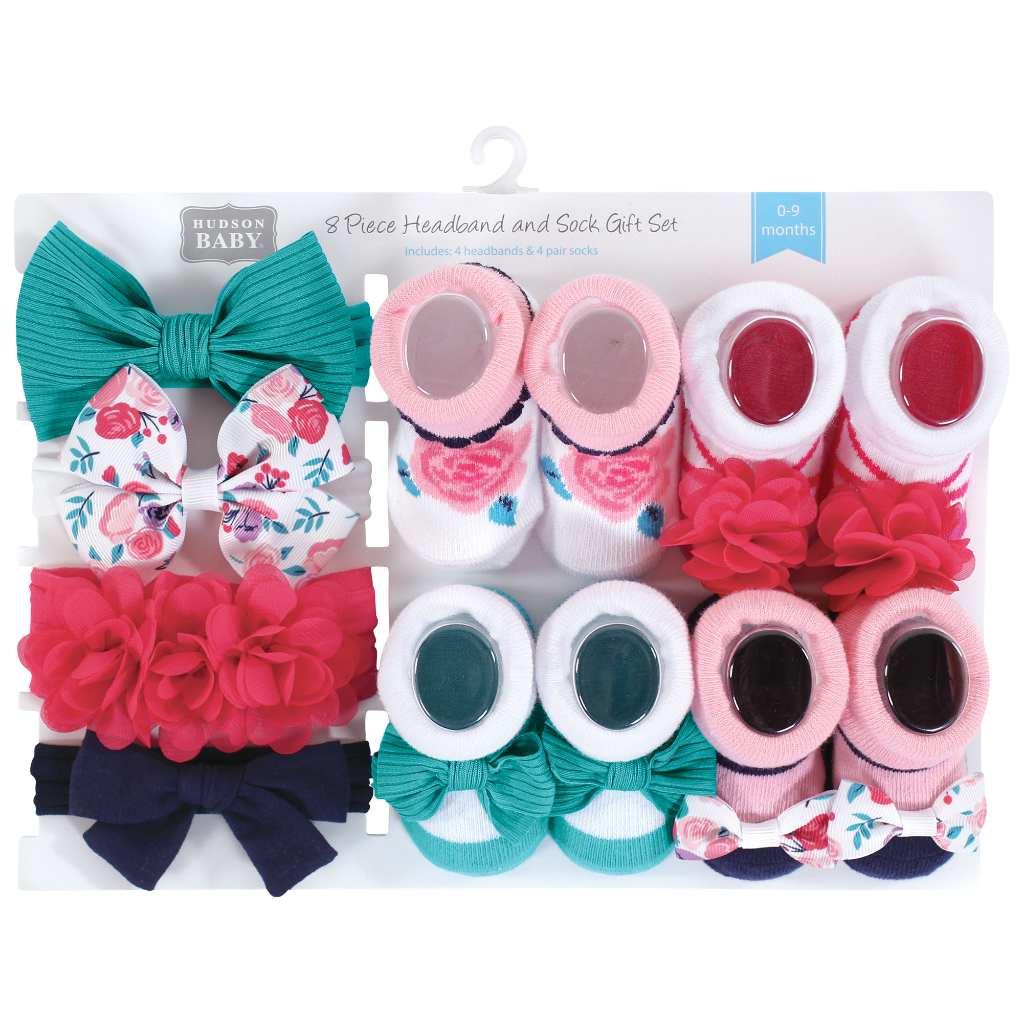 Hudson Baby socks and headband giftset is the perfect accessory set for your little one. Our giftset includes coordinating headbands and socks so your baby is looking fashionable from head to toe. Our headbands and socks are great for dressing up or everyday wear. Our giftset is packaged very nicely and makes a terrific baby shower gift.