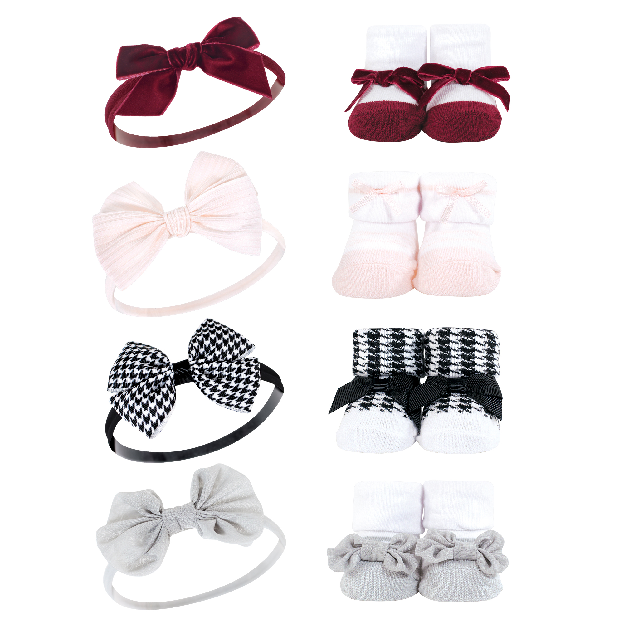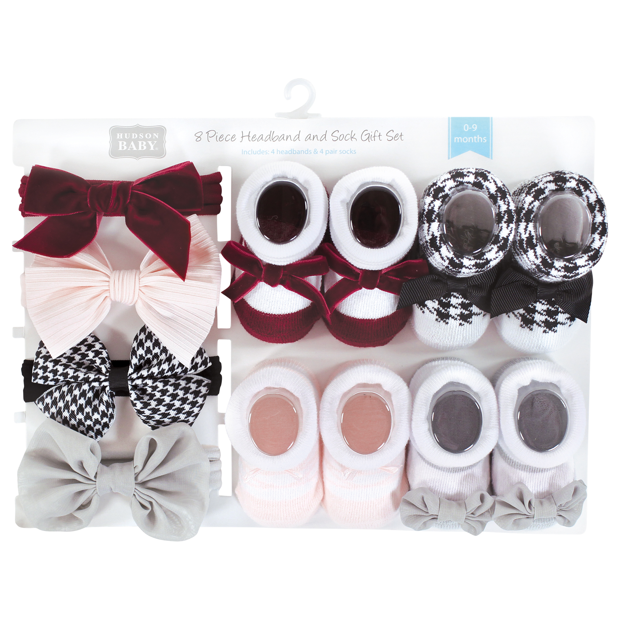 Hudson Baby Headband and Socks Giftset, Houndstooth Burgundy