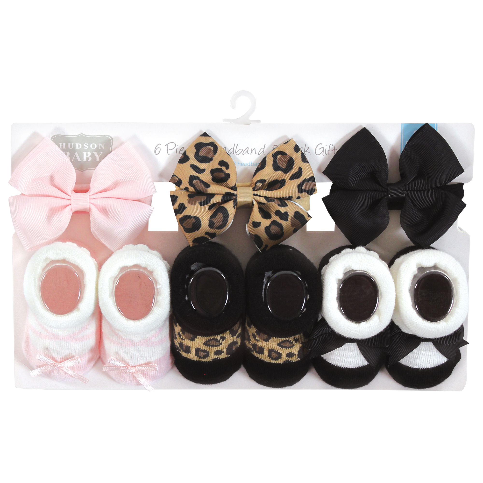 Hudson Baby socks and headband giftset is the perfect accessory set for your little one. Our giftset includes coordinating headbands and socks so your baby is looking fashionable from head to toe. Our headbands and socks are great for dressing up or everyday wear. Our giftset is packaged very nicely and makes a terrific baby shower gift.
