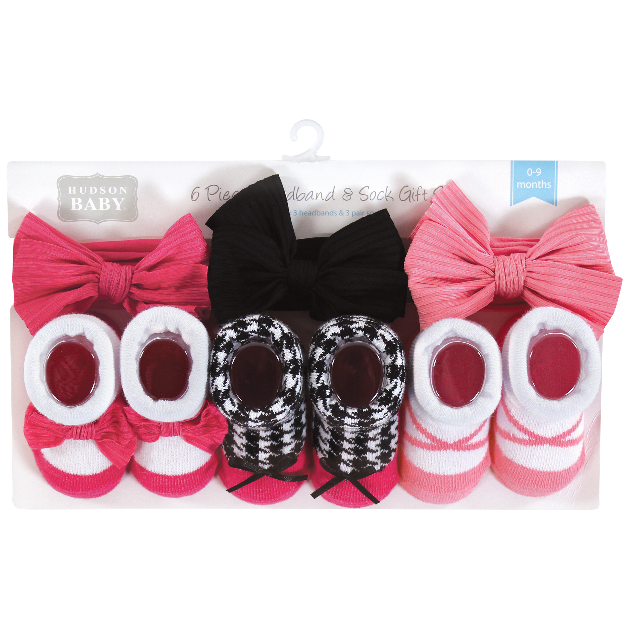Hudson Baby Headband and Socks Giftset, Pink Black