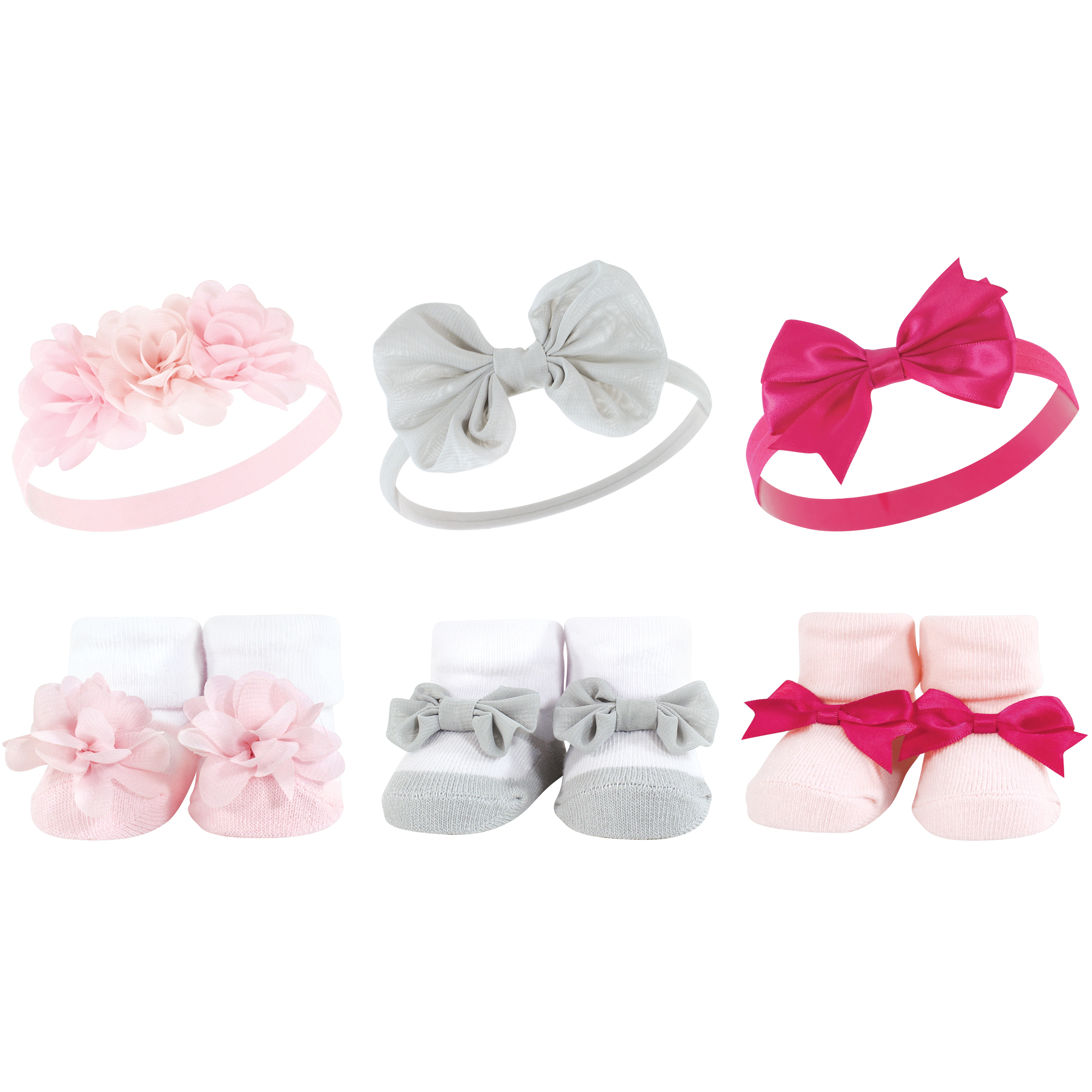Hudson Baby Headband and Socks Giftset, Pink Gray Flower