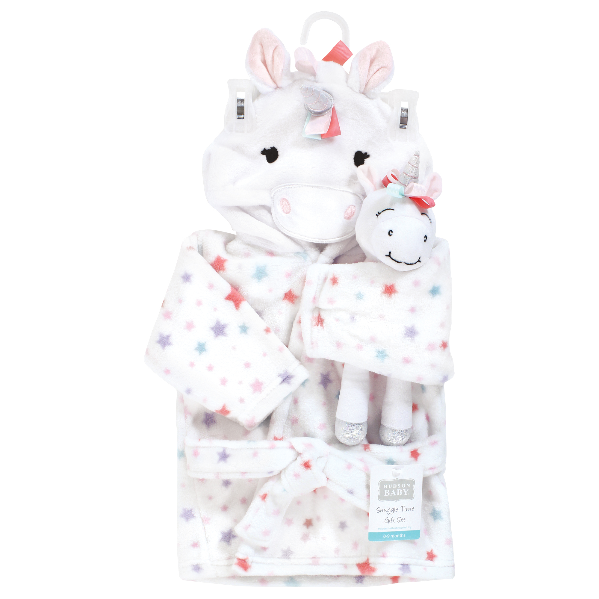 Hudson Baby Plush Bathrobe and Toy Set, Rainbow Unicorn