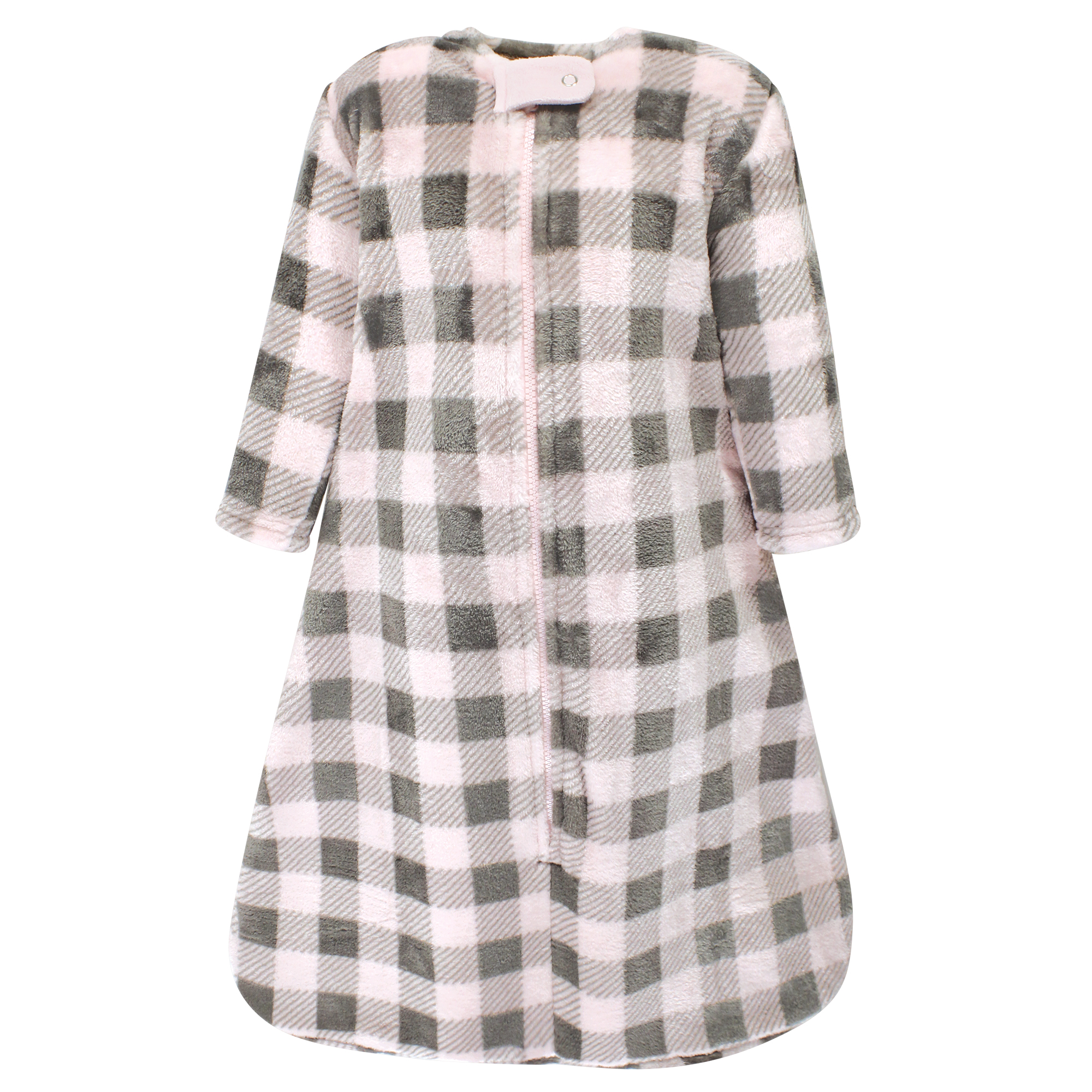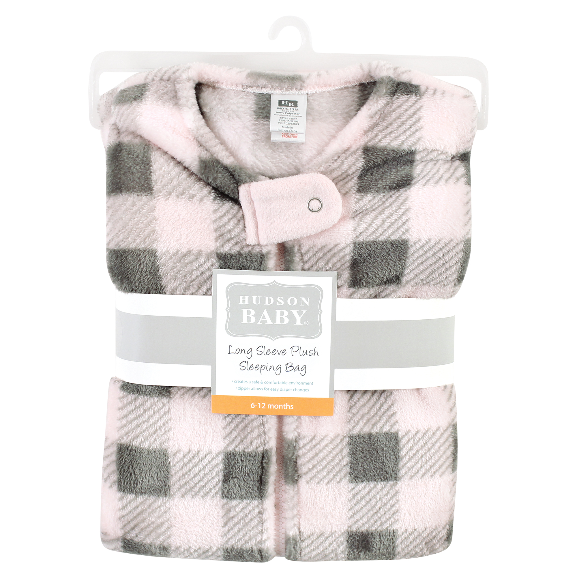 Hudson Baby Plush Sleeping Bag, Sack, Blanket, Long-Sleeve Pink Gray Plaid