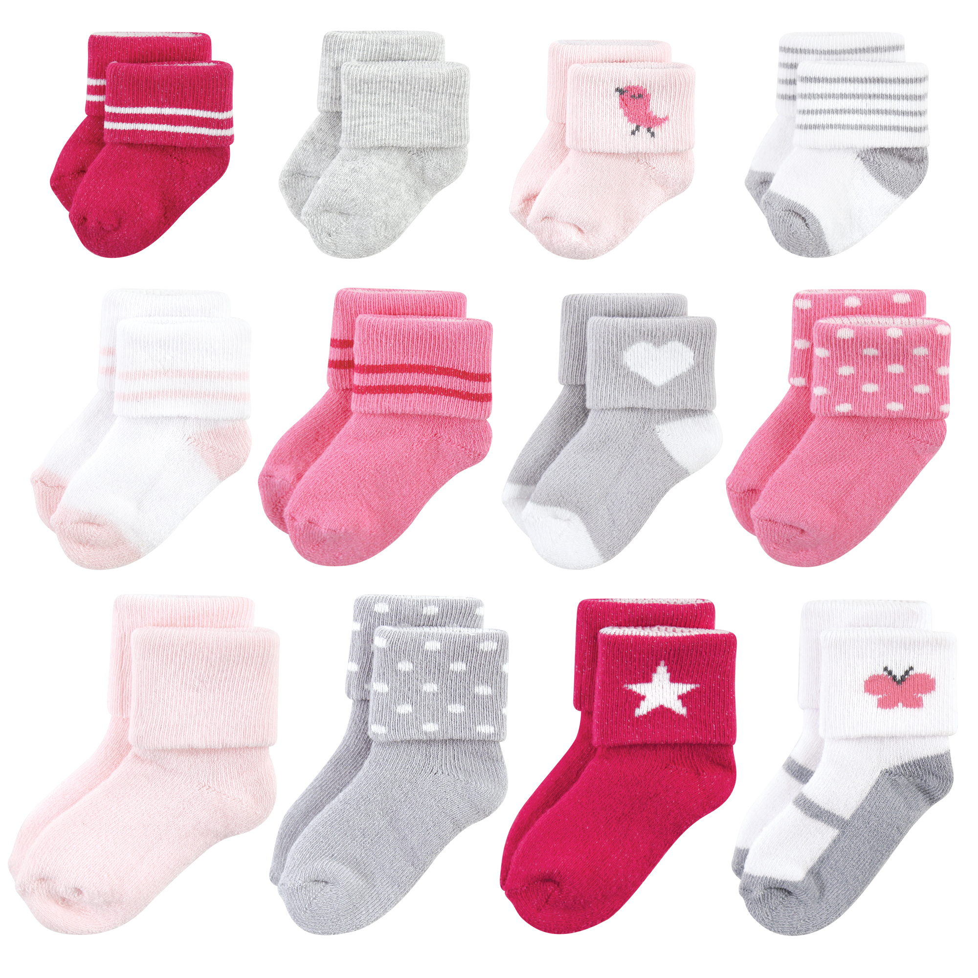 Hudson Baby grow with me socks are ideal baby socks for everyday wear with cotton-rich fabric that are soft and comfortable. Our bundle of socks include socks for when your little one is 0-6 months, 6-12 months and 12-24 months. Our stretchable design makes for proper fit and no fuss dressing. Made with soft, cushy fabric, our socks are a great addition to your little one's outfit.