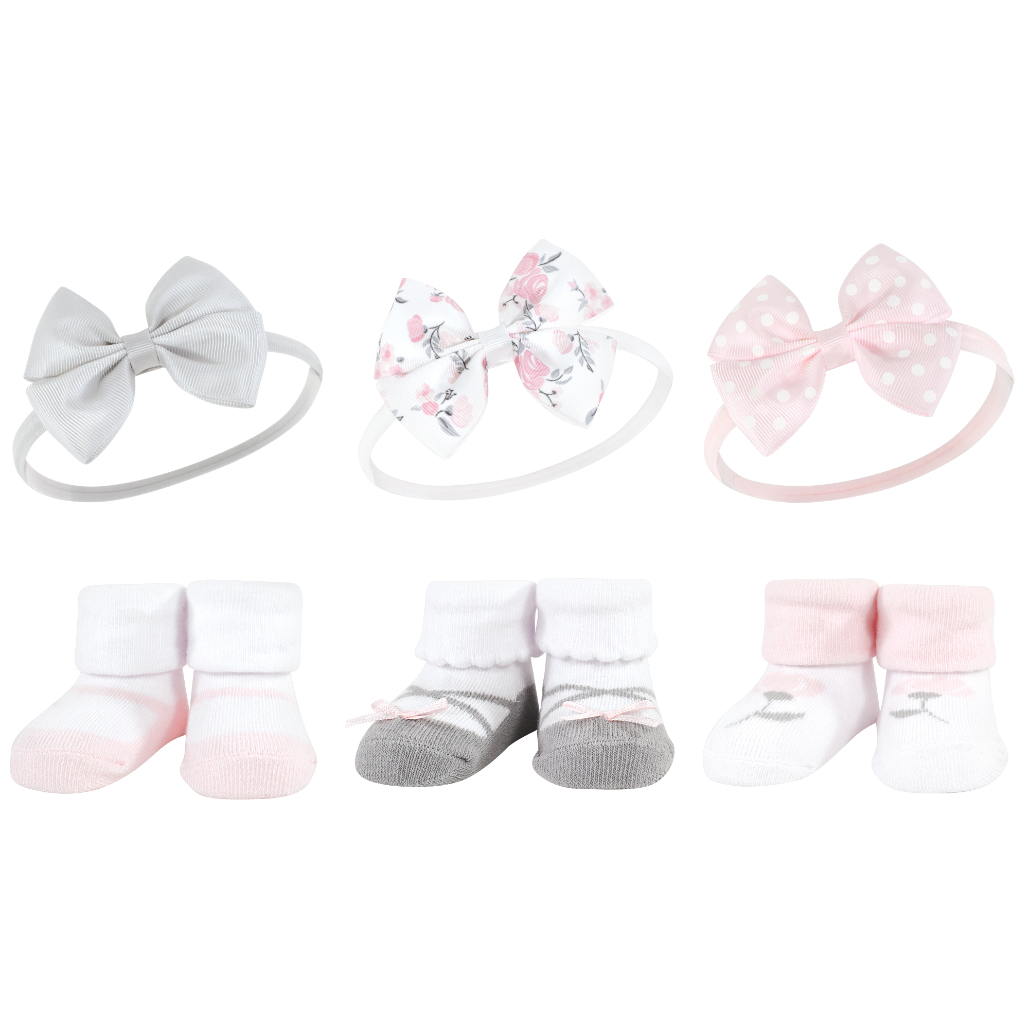 Hudson Baby Headband and Socks Giftset, Basic Pink Floral