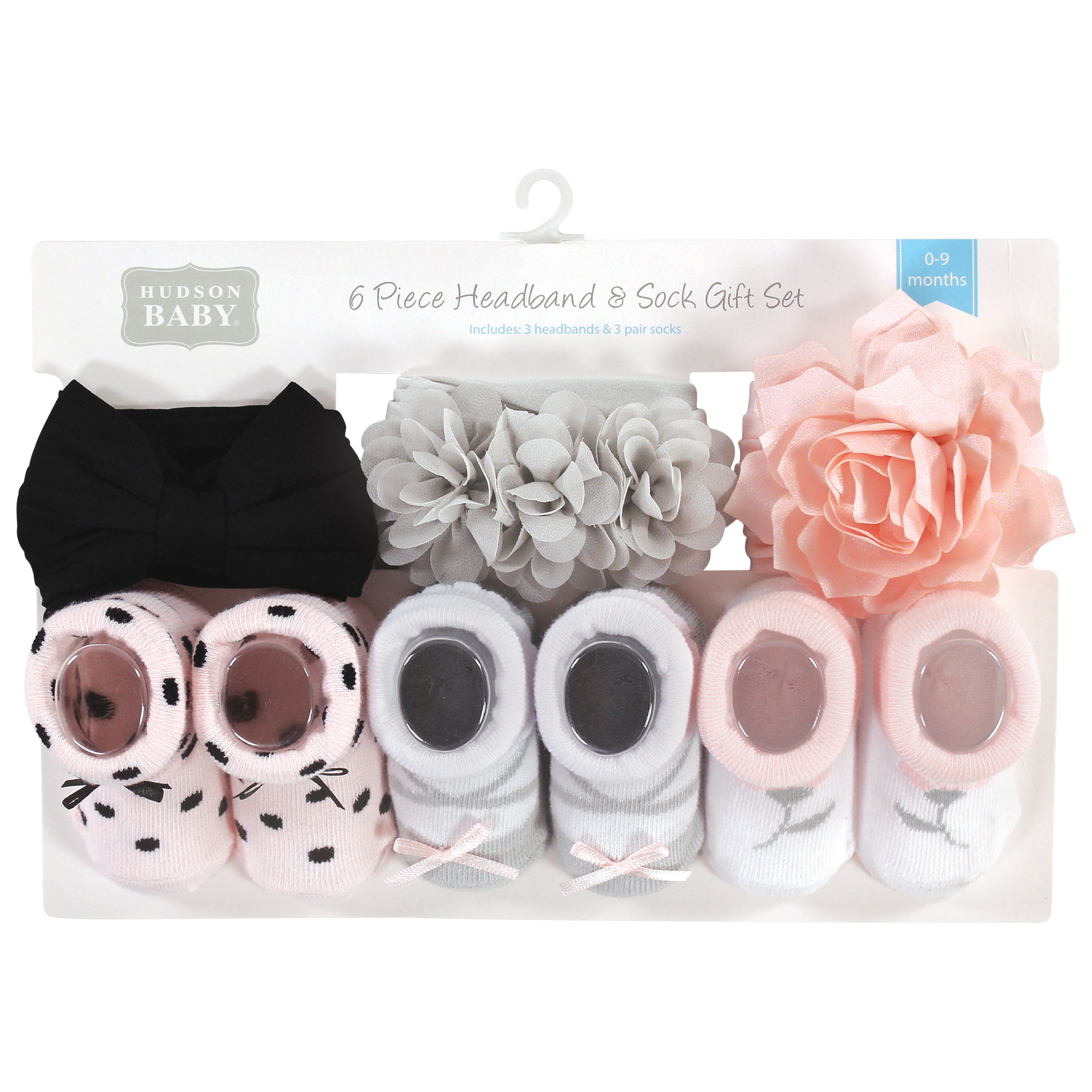 Hudson Baby Headband and Socks Giftset, Pink Black Gray