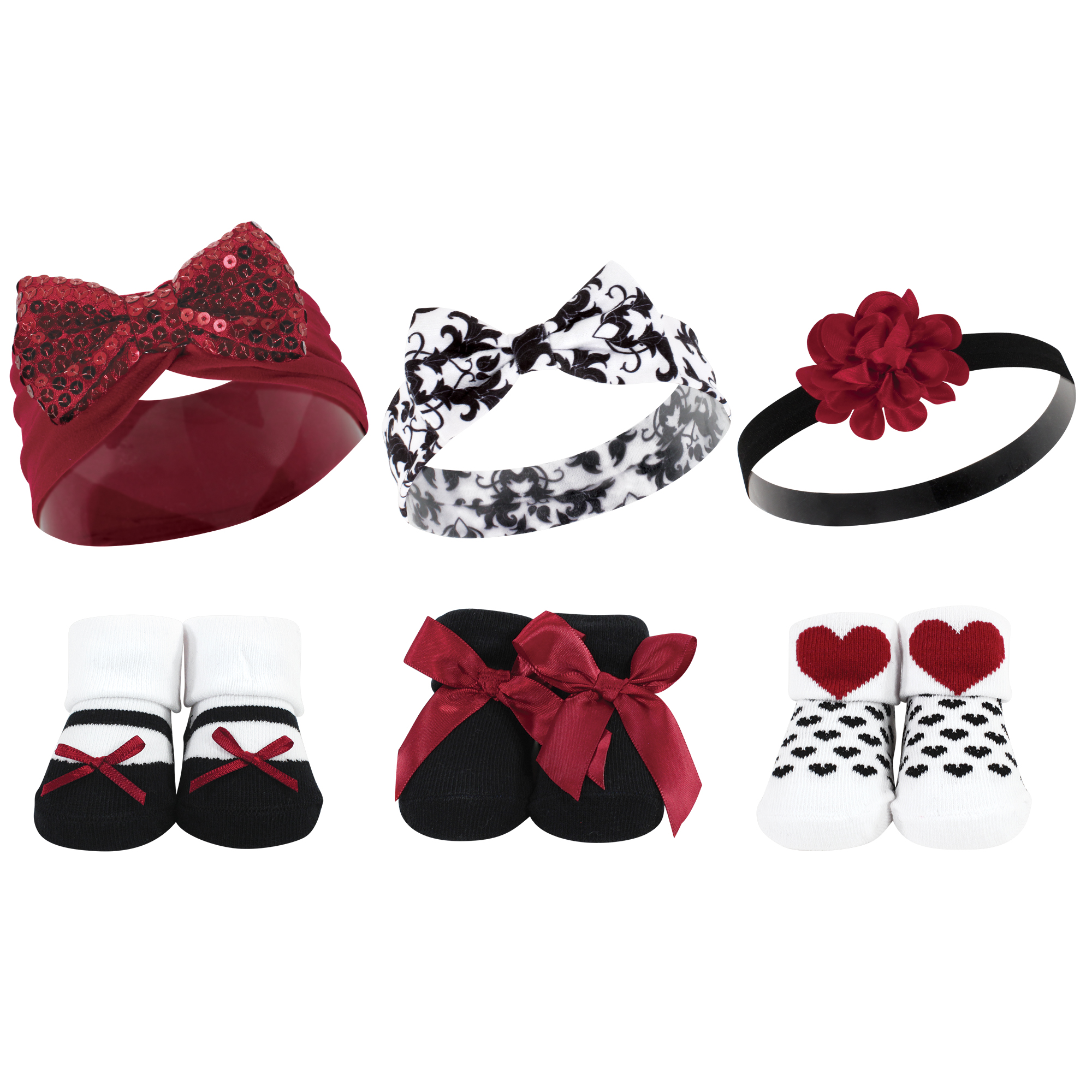 Hudson Baby Headband and Socks Giftset, Red Sequin