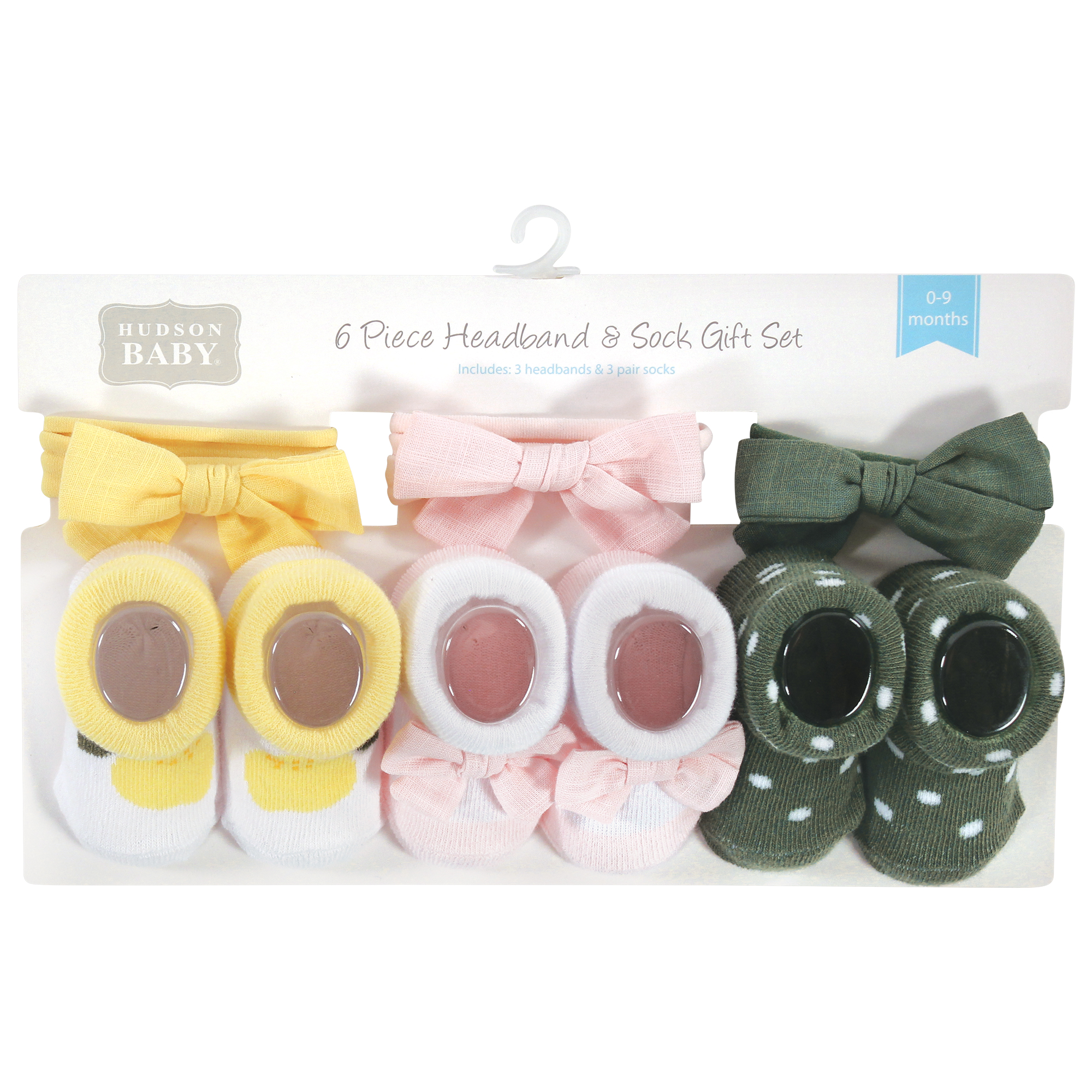 Hudson Baby Headband and Socks Giftset, Yellow Green Lemon