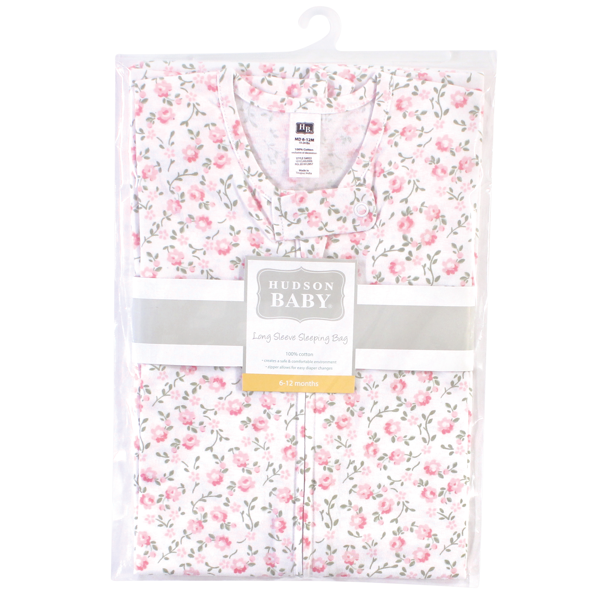 Hudson Baby Long Sleeve Cotton Jersey Sleeping Bag, Pink Peony