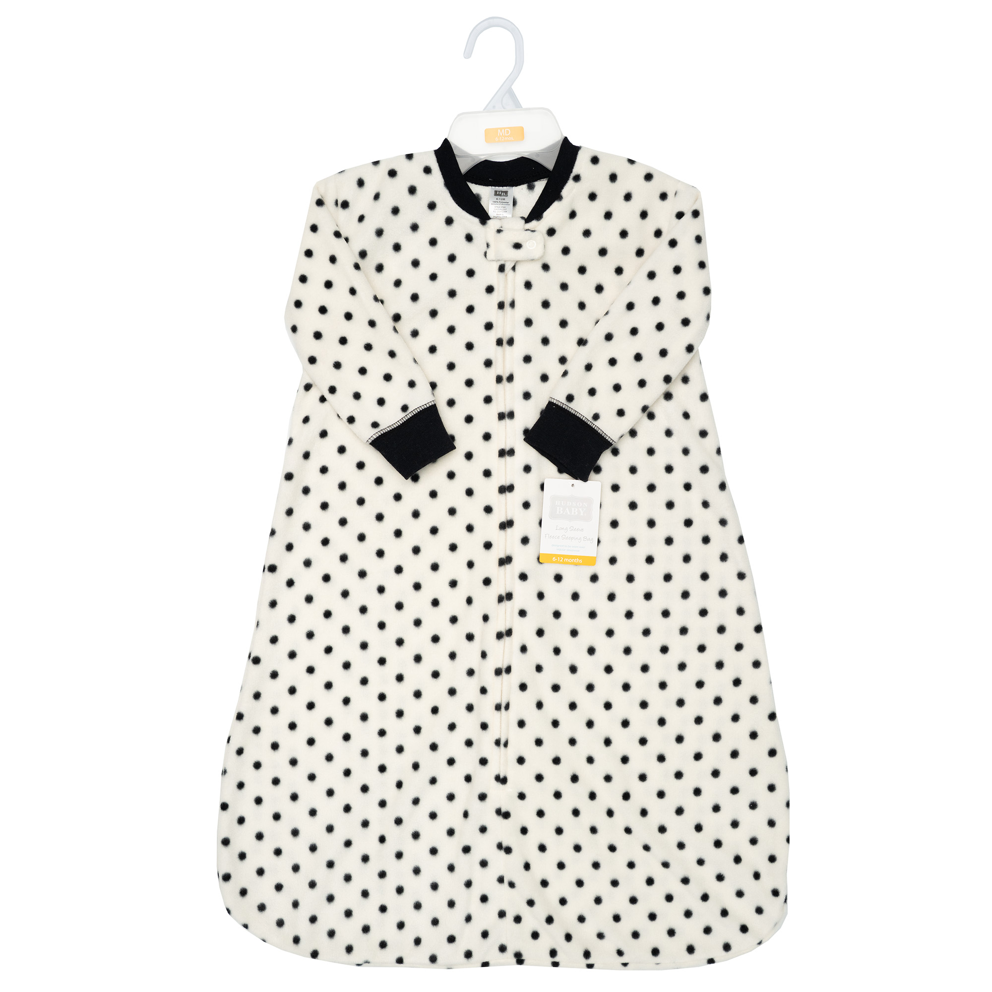 Hudson Baby Long-Sleeve Fleece Sleeping Bag, Black Cream Dot