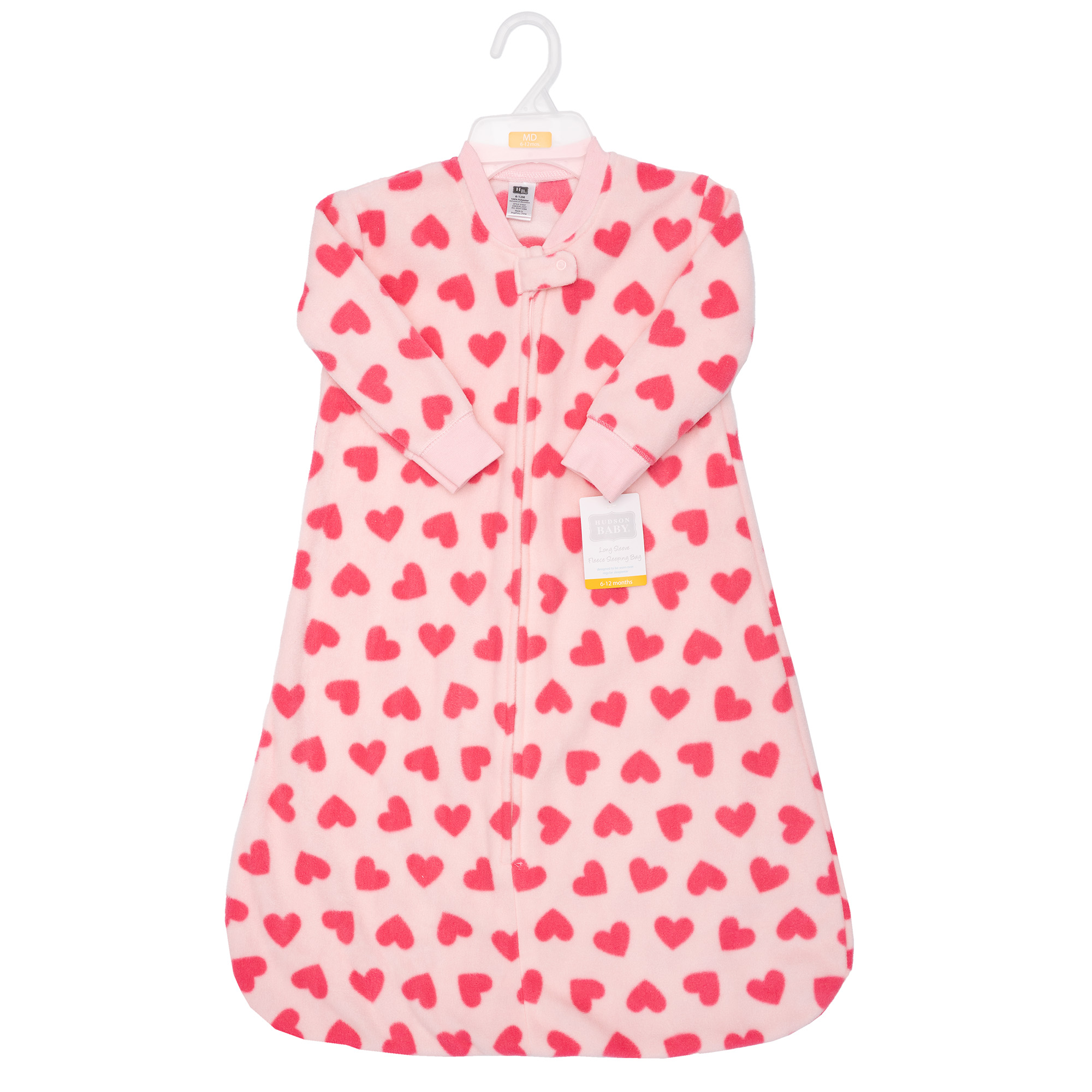 Hudson Baby Long-Sleeve Fleece Sleeping Bag, Bright Pink Hearts