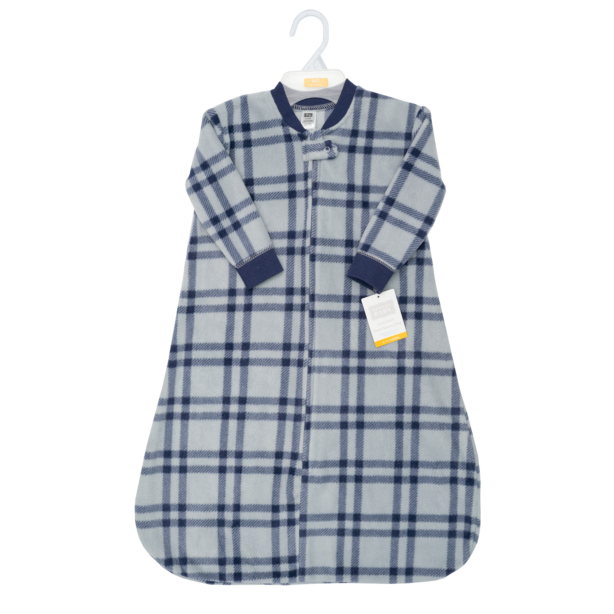 Hudson Baby Long-Sleeve Fleece Sleeping Bag, Gray Navy Plaid