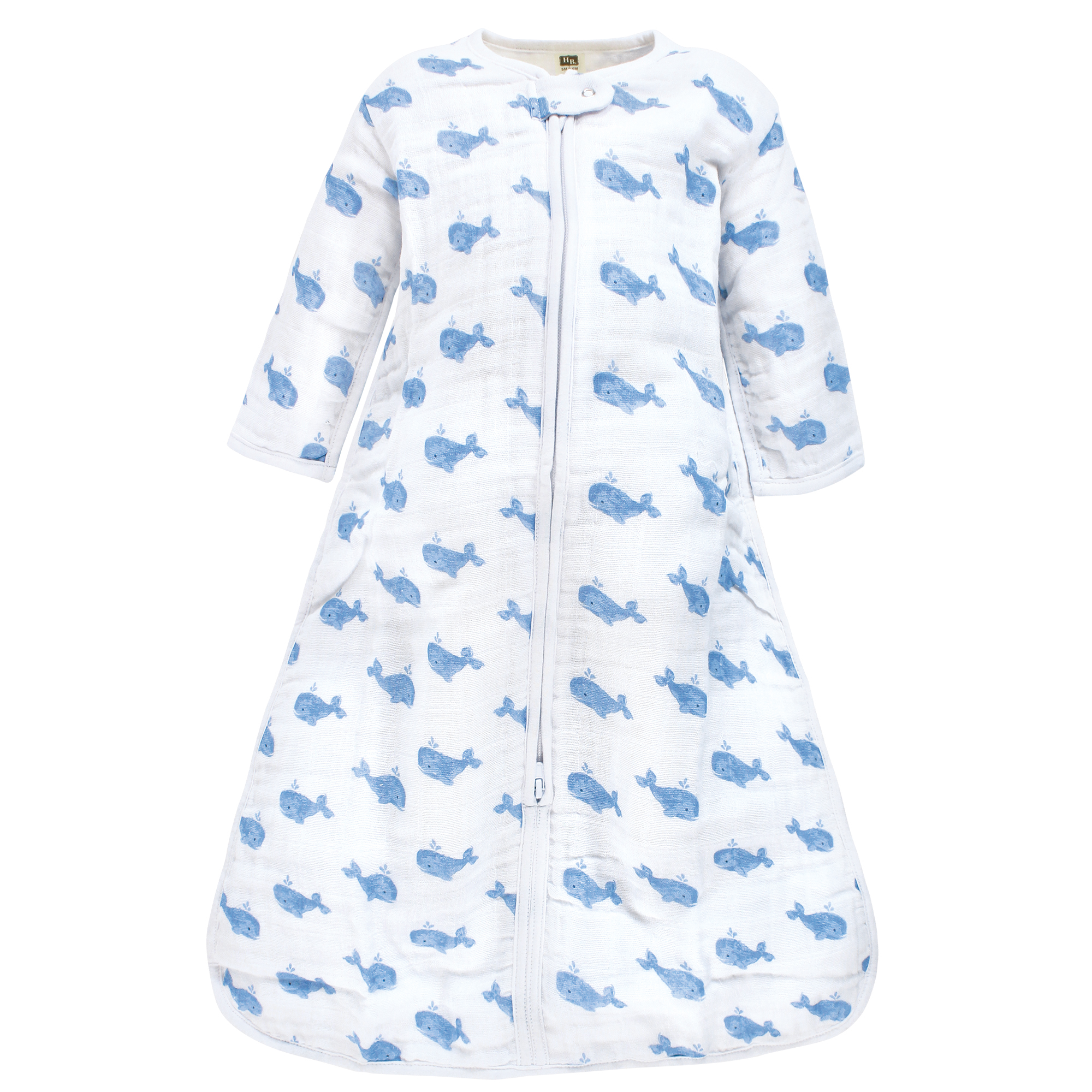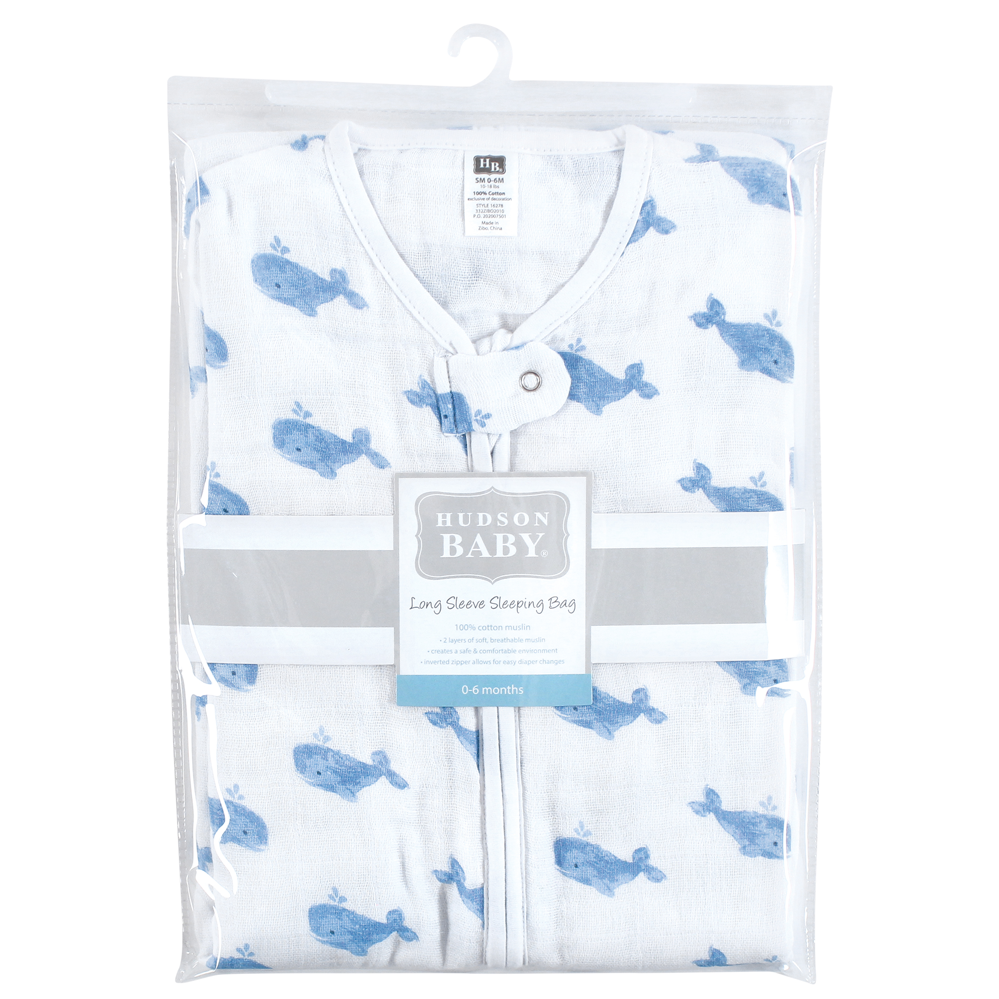 Hudson Baby Long Sleeve Muslin Sleeping Bag, Wearable Blanket, Sleep Sack, Blue Whale