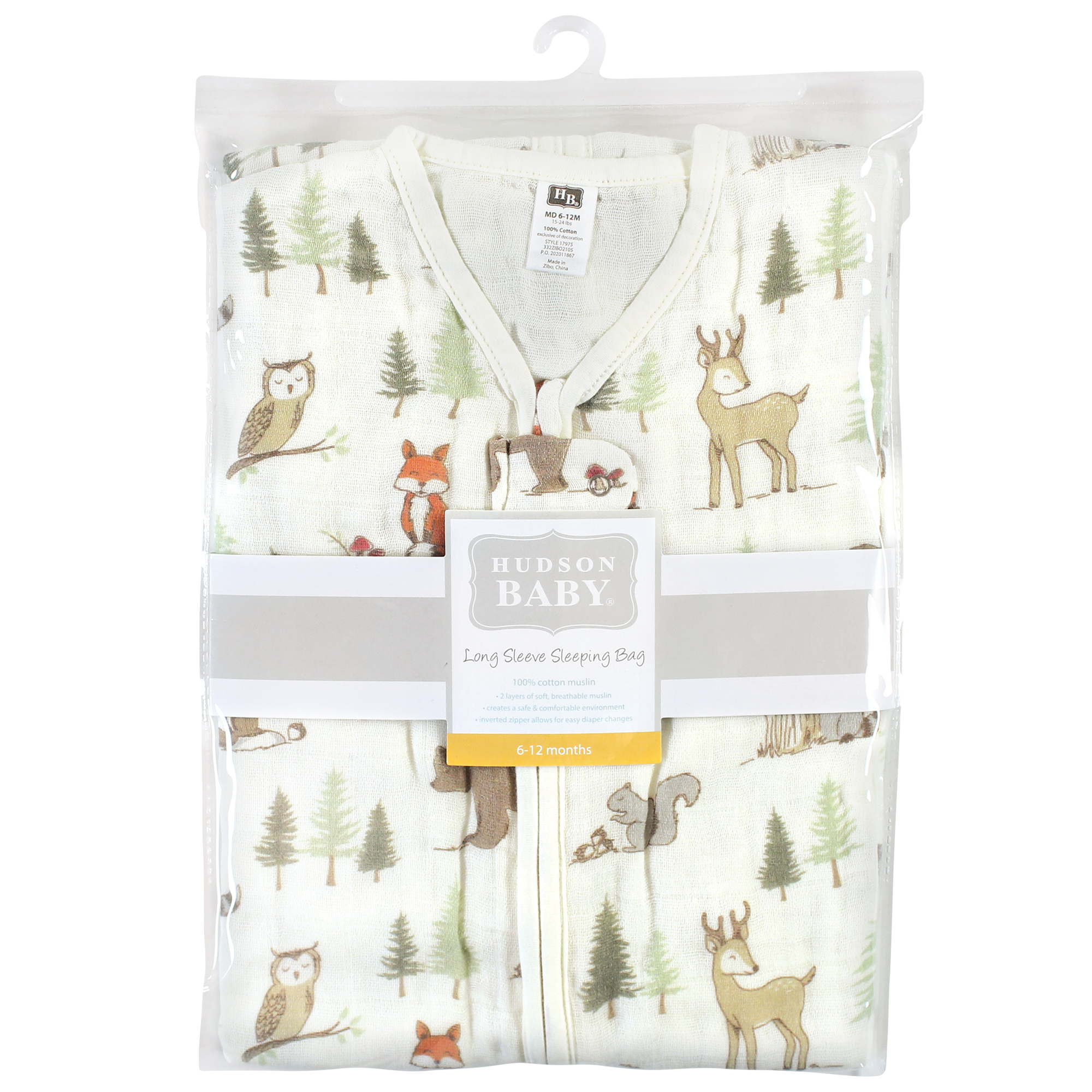 Hudson Baby Long Sleeve Muslin Sleeping Bag, Wearable Blanket, Sleep Sack, Forest Animals