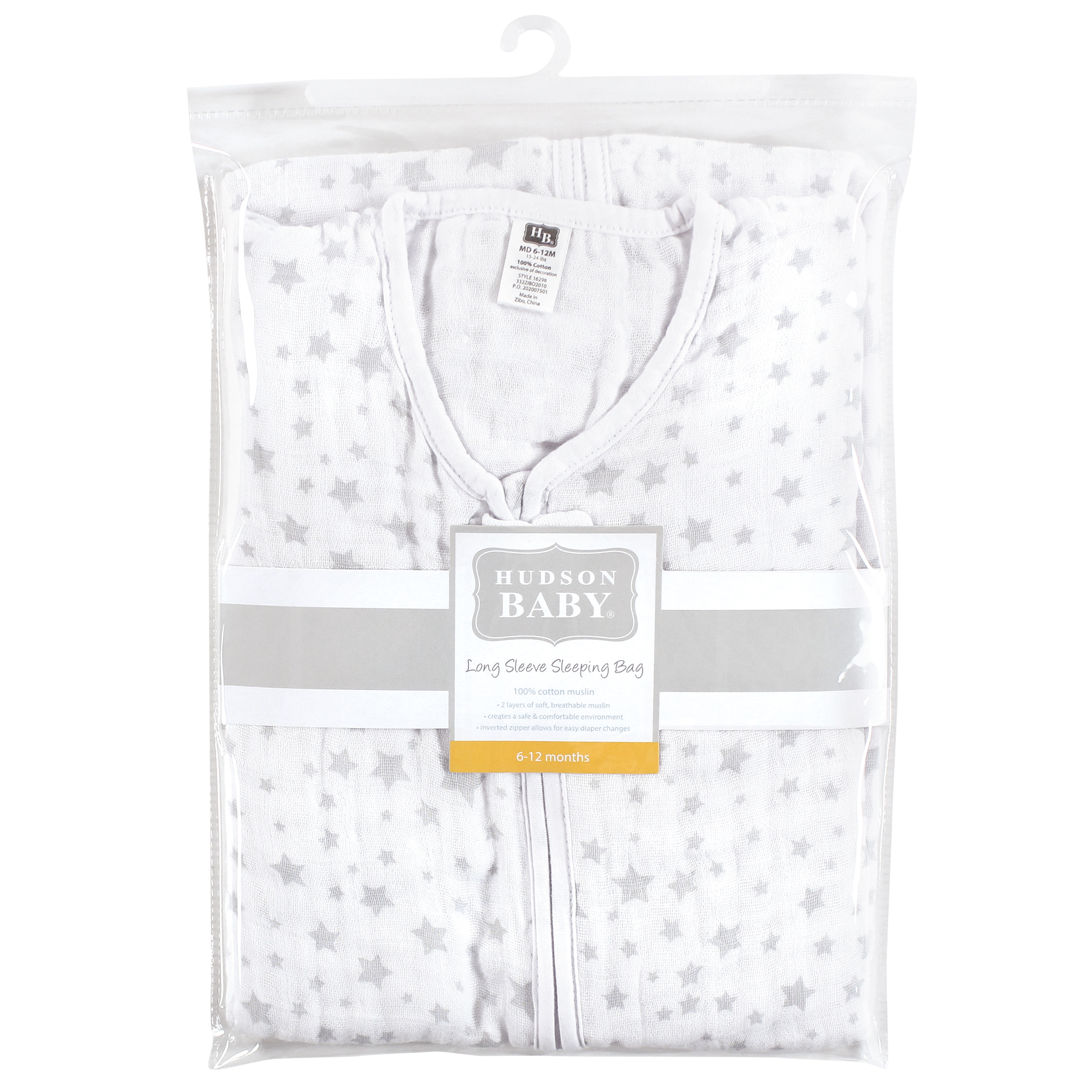 Hudson Baby Long Sleeve Muslin Sleeping Bag, Wearable Blanket, Sleep Sack, Gray Star