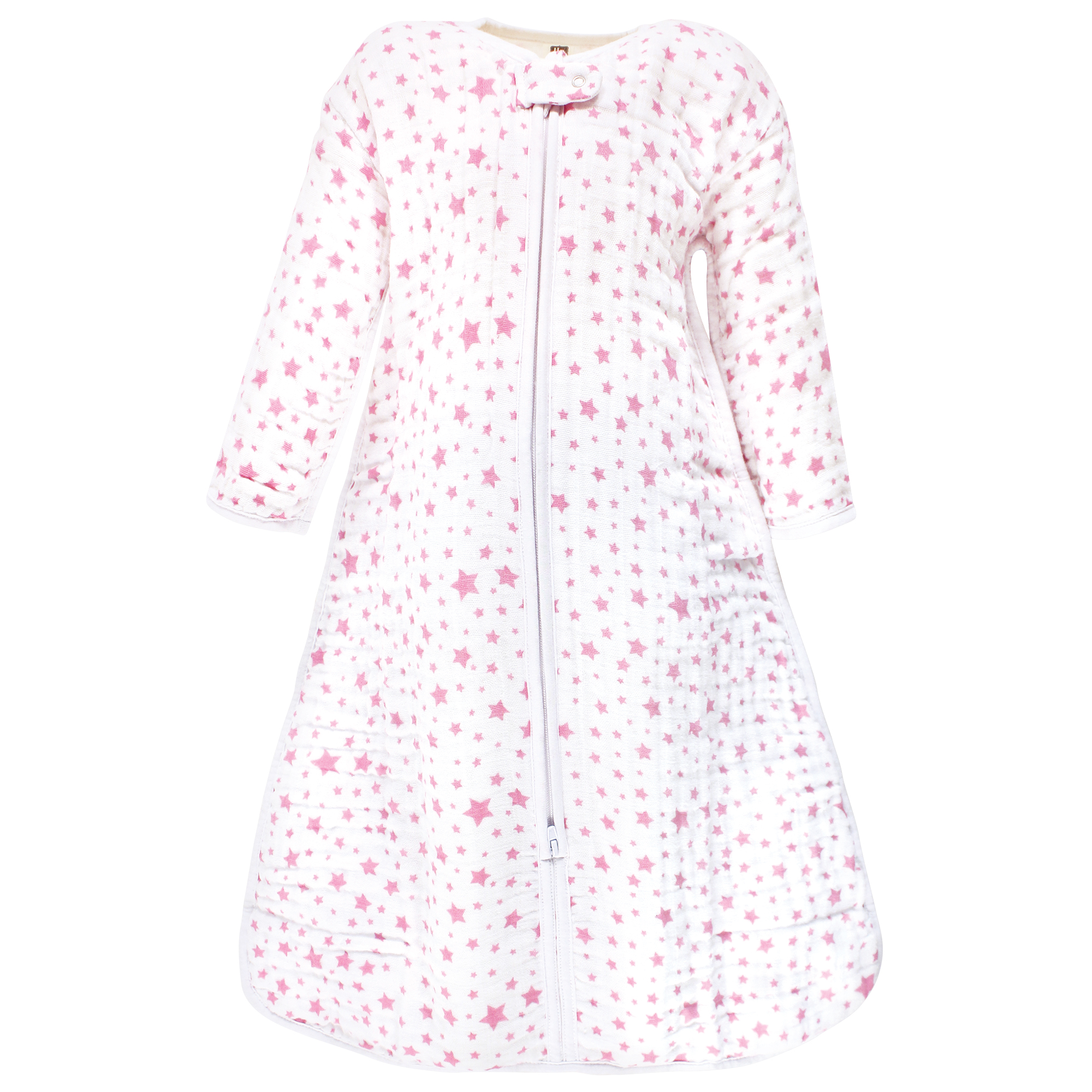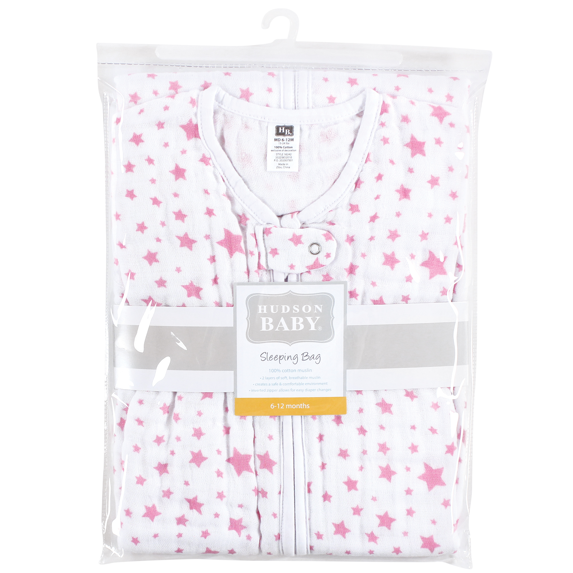 Hudson Baby Long Sleeve Muslin Sleeping Bag, Wearable Blanket, Sleep Sack, Pink Star
